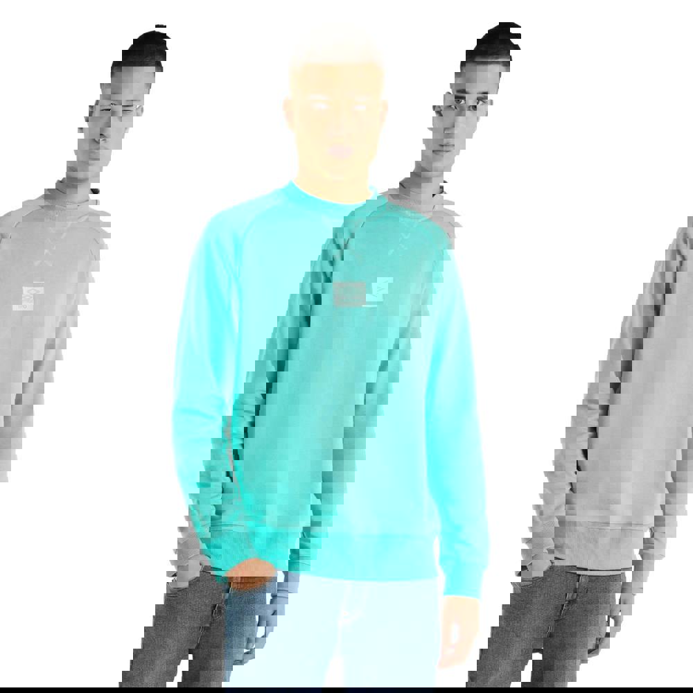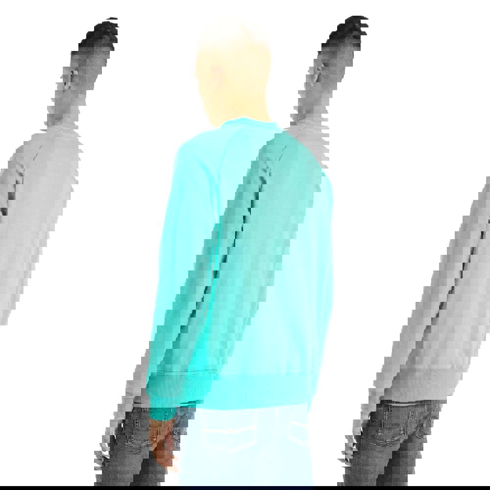 The crew neck is ribbed and matched with ribbed cuffs and a ribbed hem for a clean finish. Long raglan sleeves add a relaxed shape, while coverstitch detailing and a logo design complete the look.