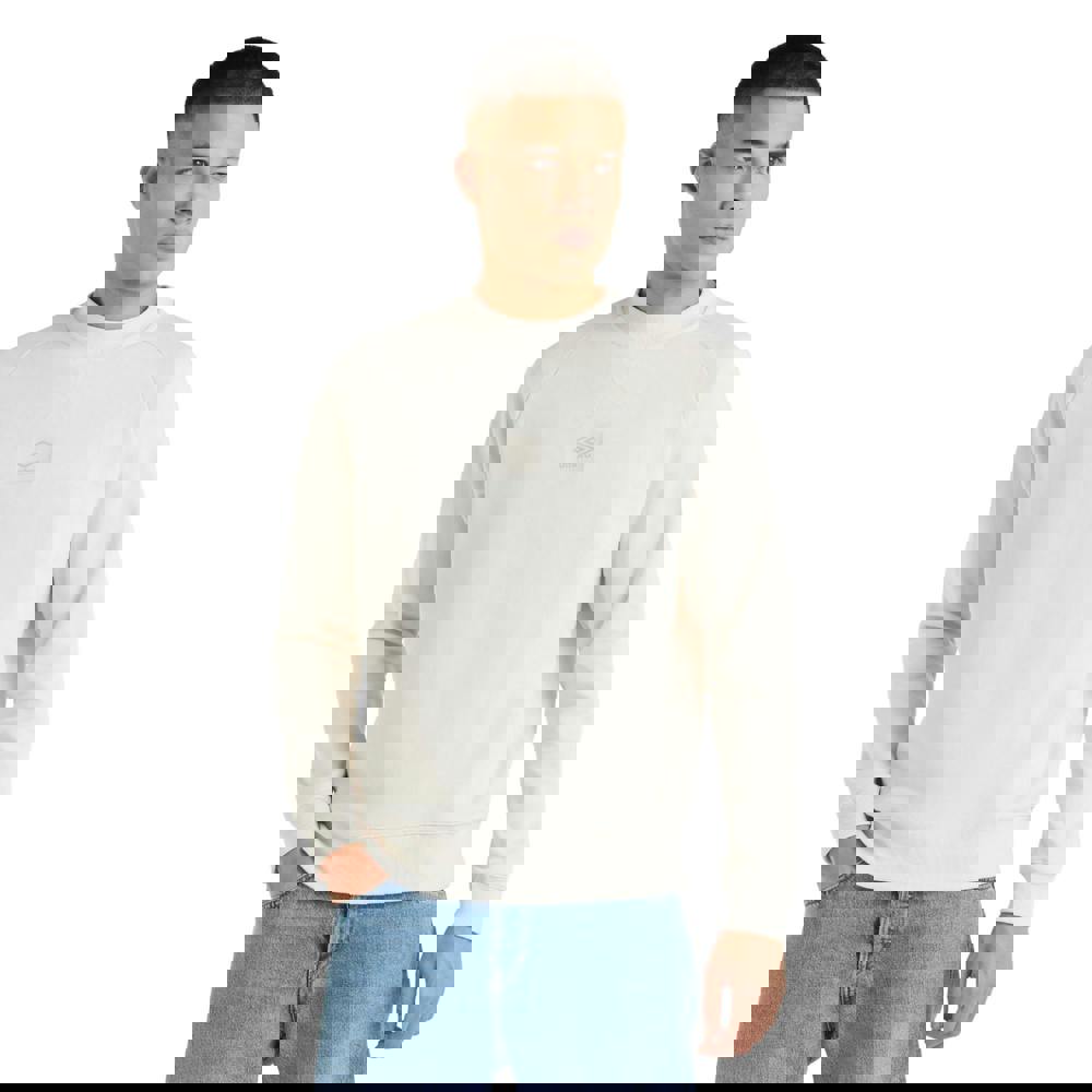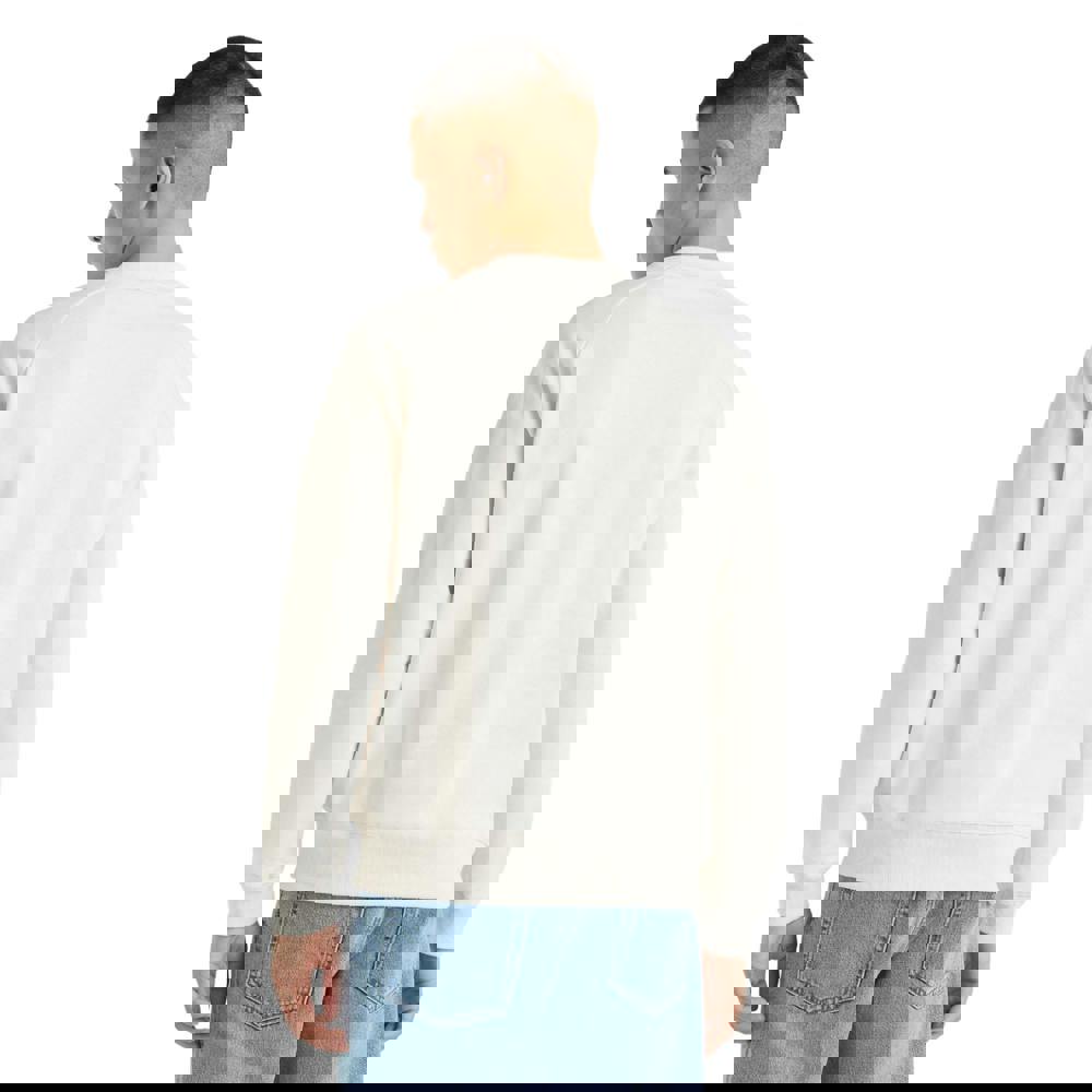This men’s sweatshirt is made from a 70% cotton, 30% polyester blend in brushed back fleece. It comes in White Sand with a logo design and an oversized fit for relaxed everyday wear.
