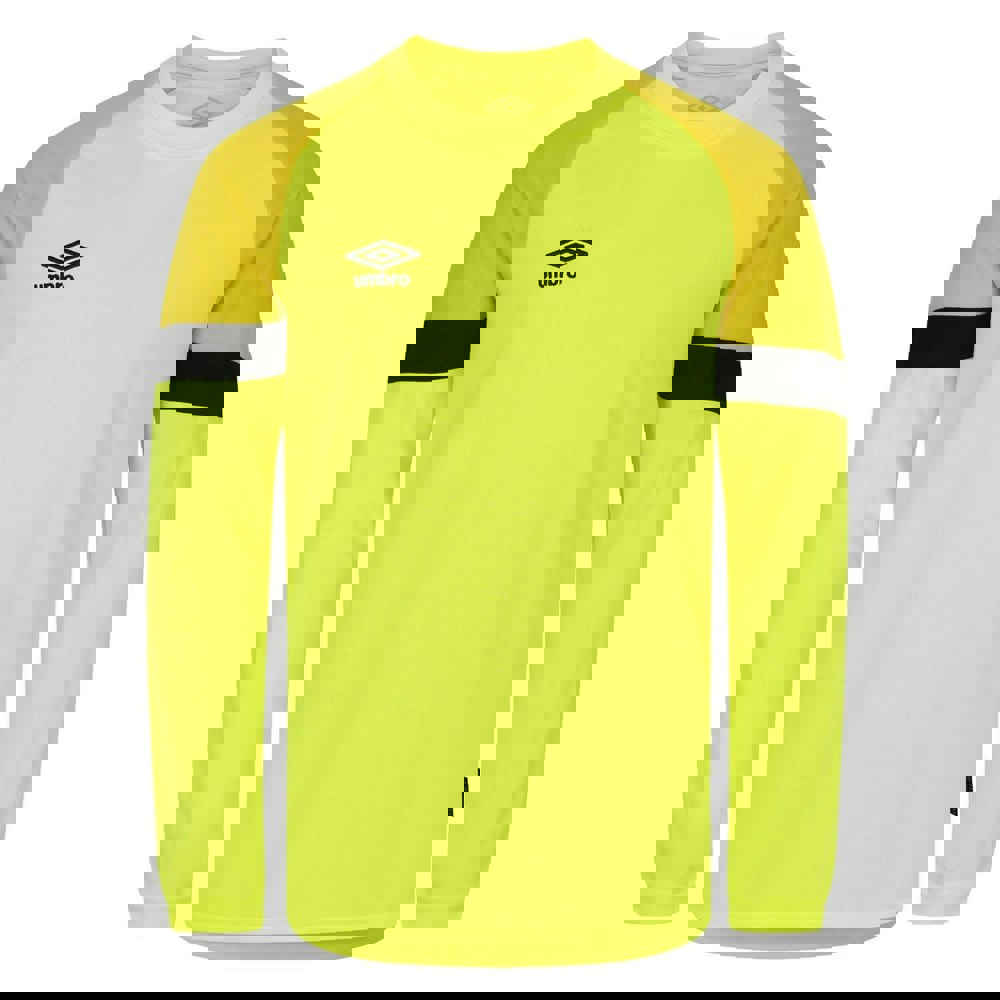 This men’s long-sleeved goalkeeper jersey from Umbro is made from polyester micro eyelet fabric. It has a crew neck and a pull over construction for a clean, simple finish. The two tone look is set off with contrast detail, alongside chevron and diamond patterning and an embroidered logo.