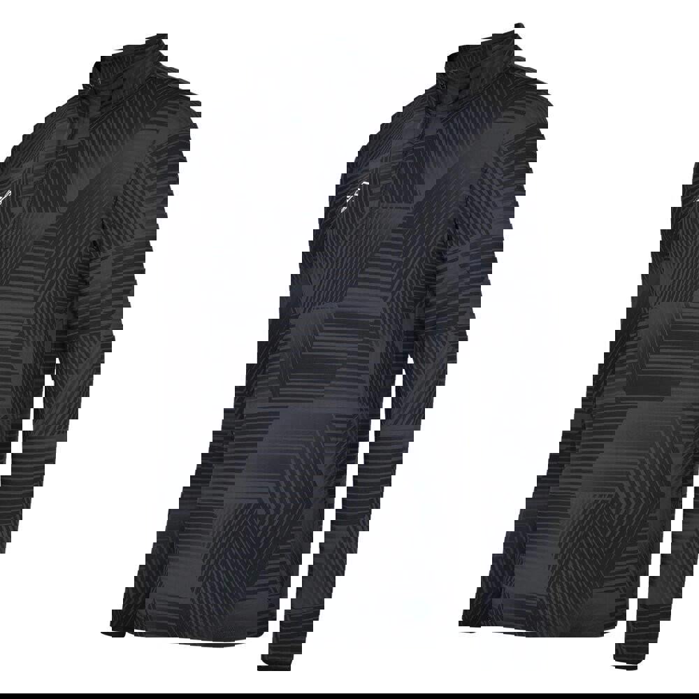 Built with long sleeves and a standing collar, it is finished with bound, elasticated cuffs for a secure feel. The quarter zip opening adds a practical detail for easy wear and simple temperature adjustment during training.
