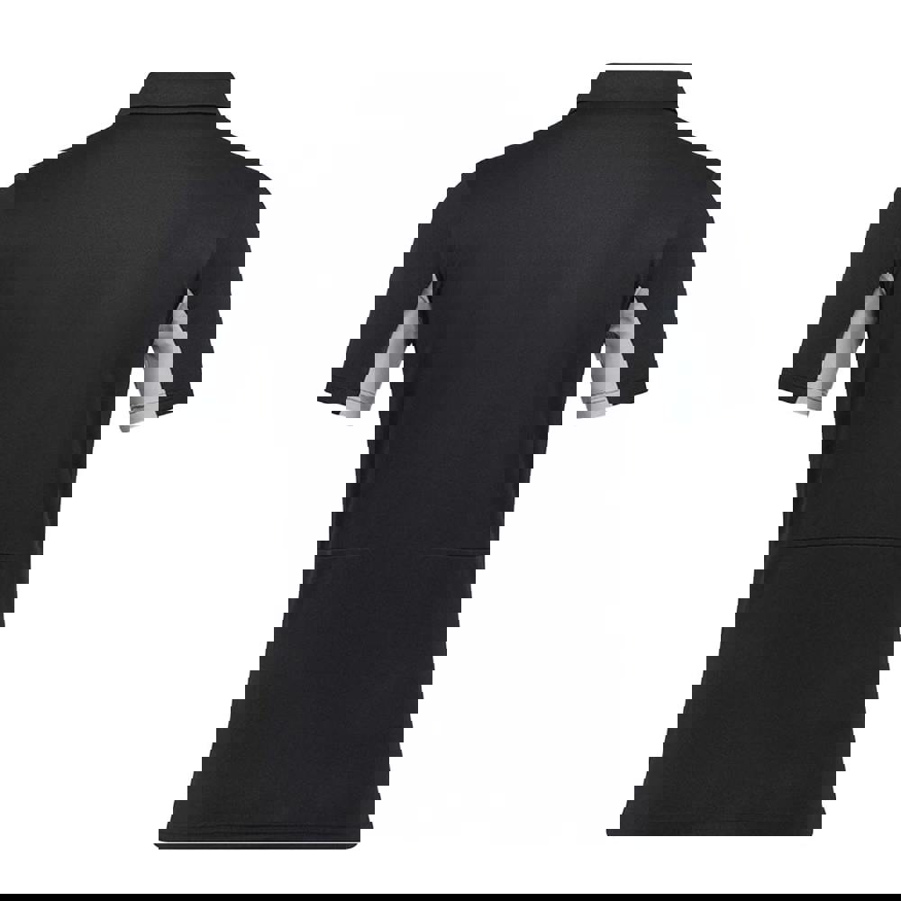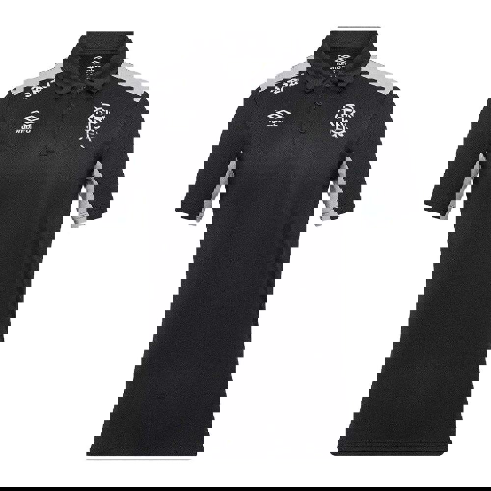 This Umbro presentation polo shirt is made from polyester and comes in Caviar/Microchip. It has a short-sleeved cut with a turn down collar and a three-button placket for a classic polo finish. Contrast panel detailing and an embroidered logo complete the look.