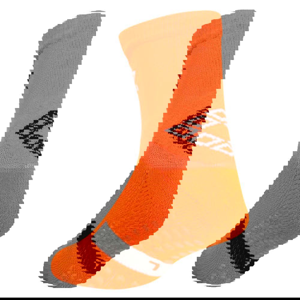 Umbro Mens Pro Protex Gripped Socks in Shocking Orange are made from a cotton-rich blend with added nylon and elastane. The mid-calf cut is finished with contrast detailing and logo branding, alongside offset side seams.