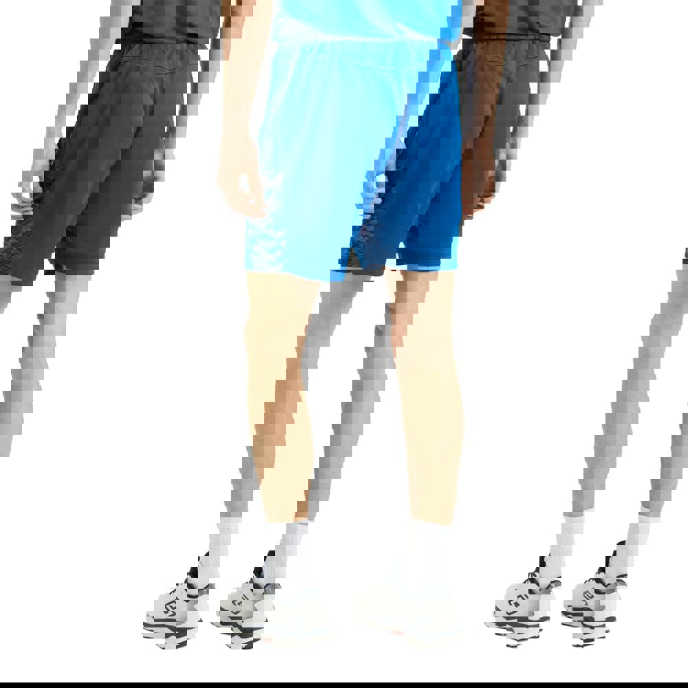 These men’s Pro Training active shorts from Umbro are made from 100% polyester micro eyelet fabric in classic blue. A graphic print and logo sit alongside panel detailing for a clean, sporty look suited to training and everyday active wear. The 140gsm construction keeps the design lightweight, while the elasticated waist and internal drawcord allow a secure, adjustable feel.