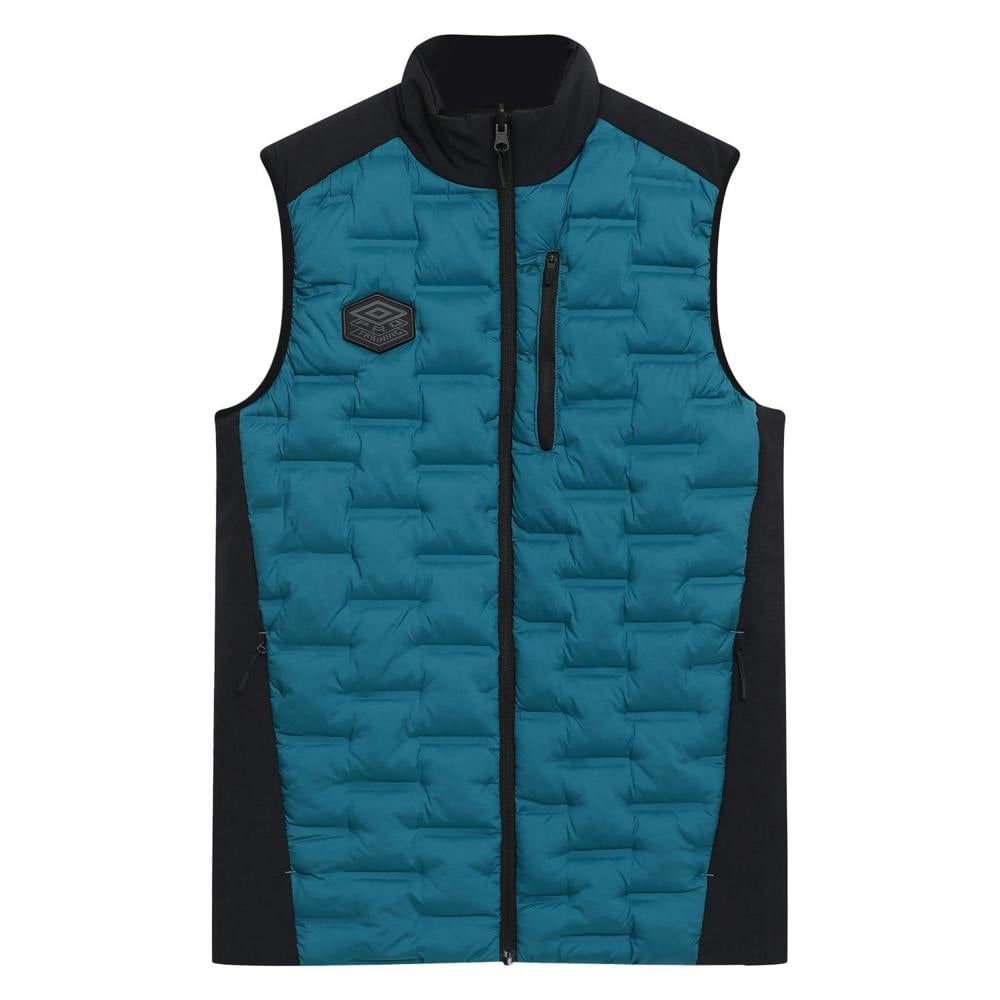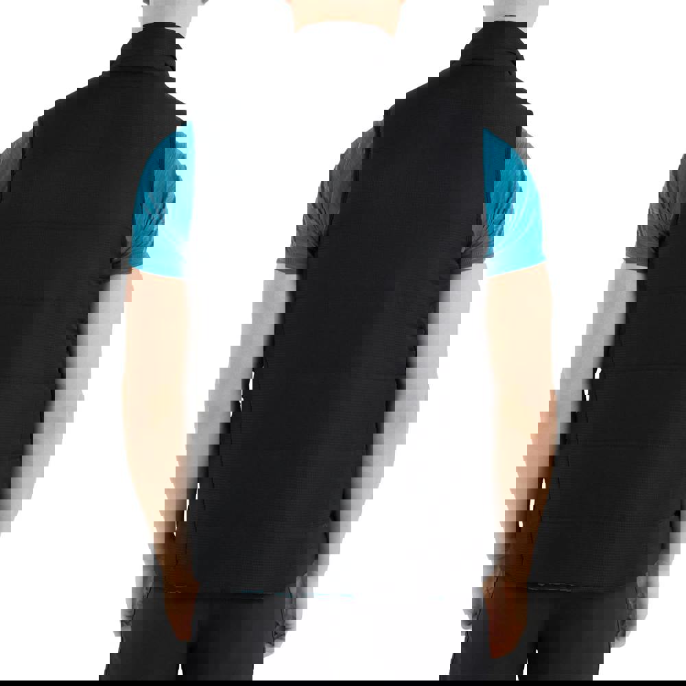 This reversible hybrid gilet combines cotton, elastane and polyester with a mix of 4 way stretch fabric, taffeta and twill. Quilted and padded with stitched baffles, it includes heat sealed details and contrast panels for a defined finish. A standing collar and full zip fastening keep the front clean and practical, while the sleeveless cut suits layering.