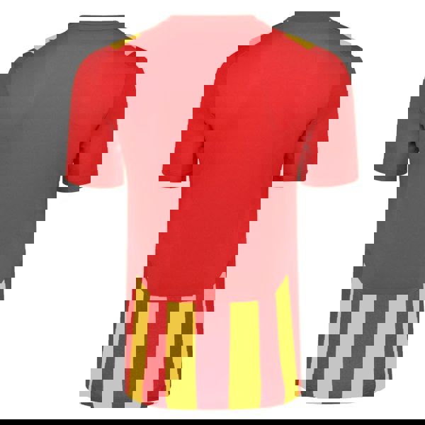 This Umbro Ramone jersey is made from 100% polyester with a lightweight feel. It comes in vermillion and yellow with a marl and stripe design, finished with a logo detail for a clean, sporty look.