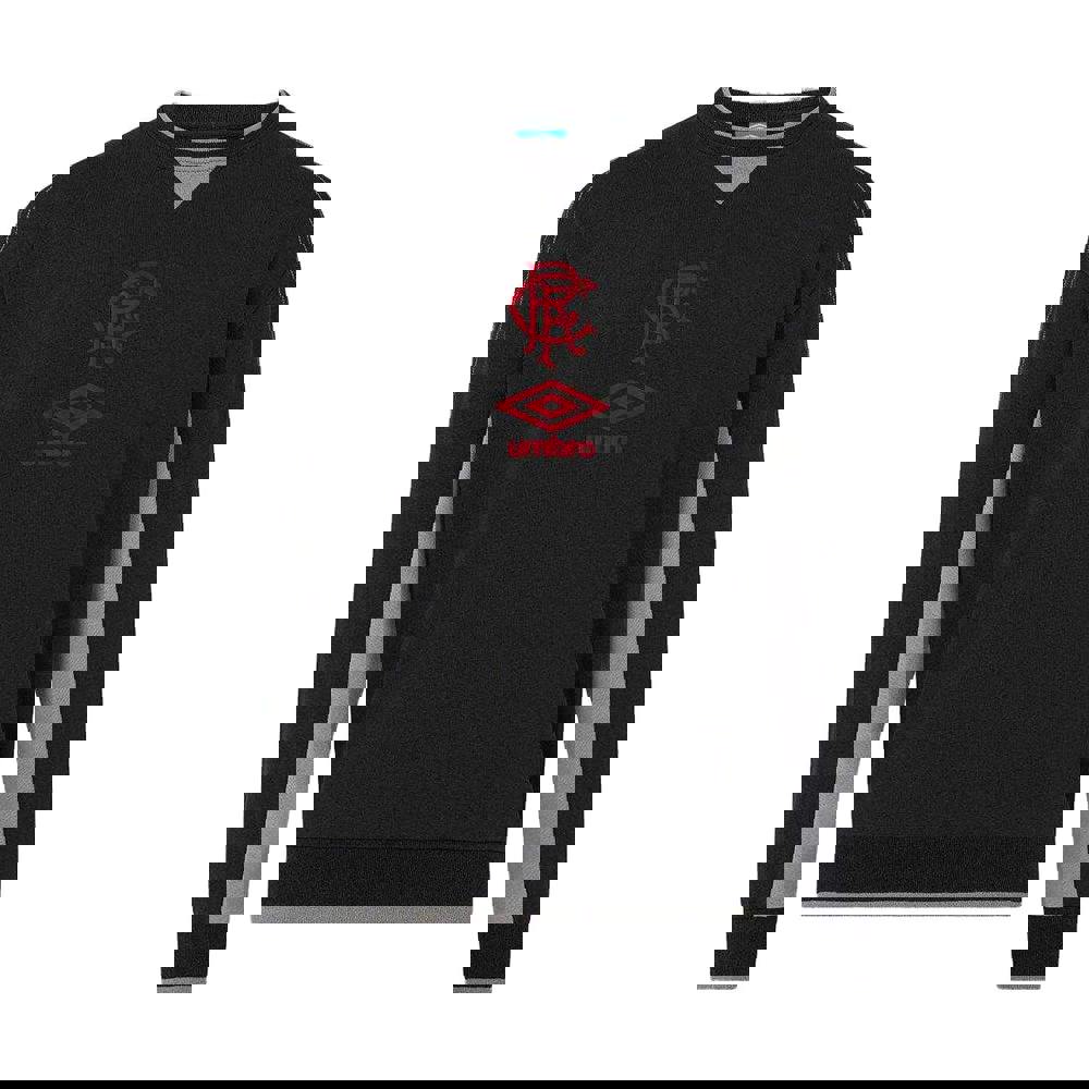 This Umbro mens Rangers FC travel sweatshirt is finished in caviar and built around a relaxed fit with a pull over crew neck. The neckline, cuffs and hem are ribbed and fitted, with long sleeves and a drop shoulder shape for a laid-back profile.