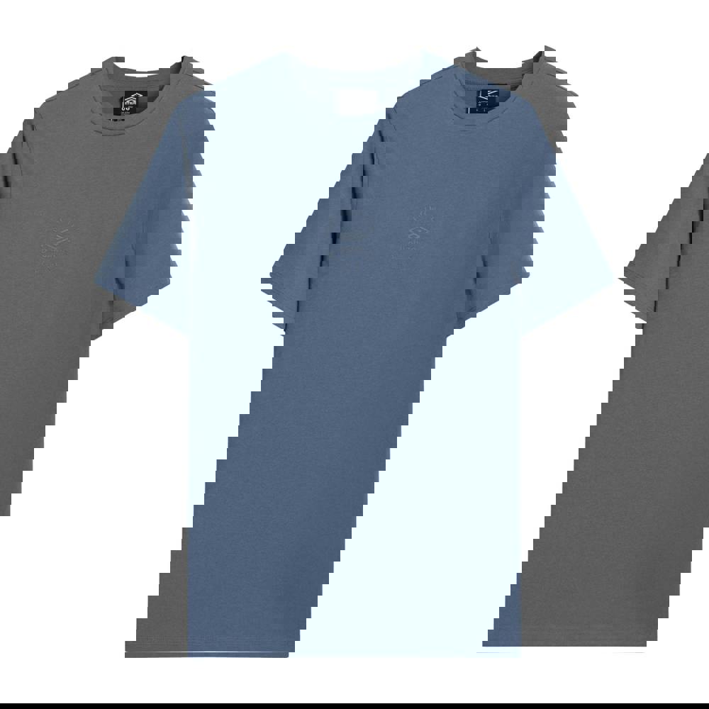 This Umbro men’s T-shirt comes in China Blue and is made from 100% cotton single jersey. It has a relaxed fit and a crew neck with a ribbed finish. Short sleeves and a drop-shoulder cut complete the silhouette.
