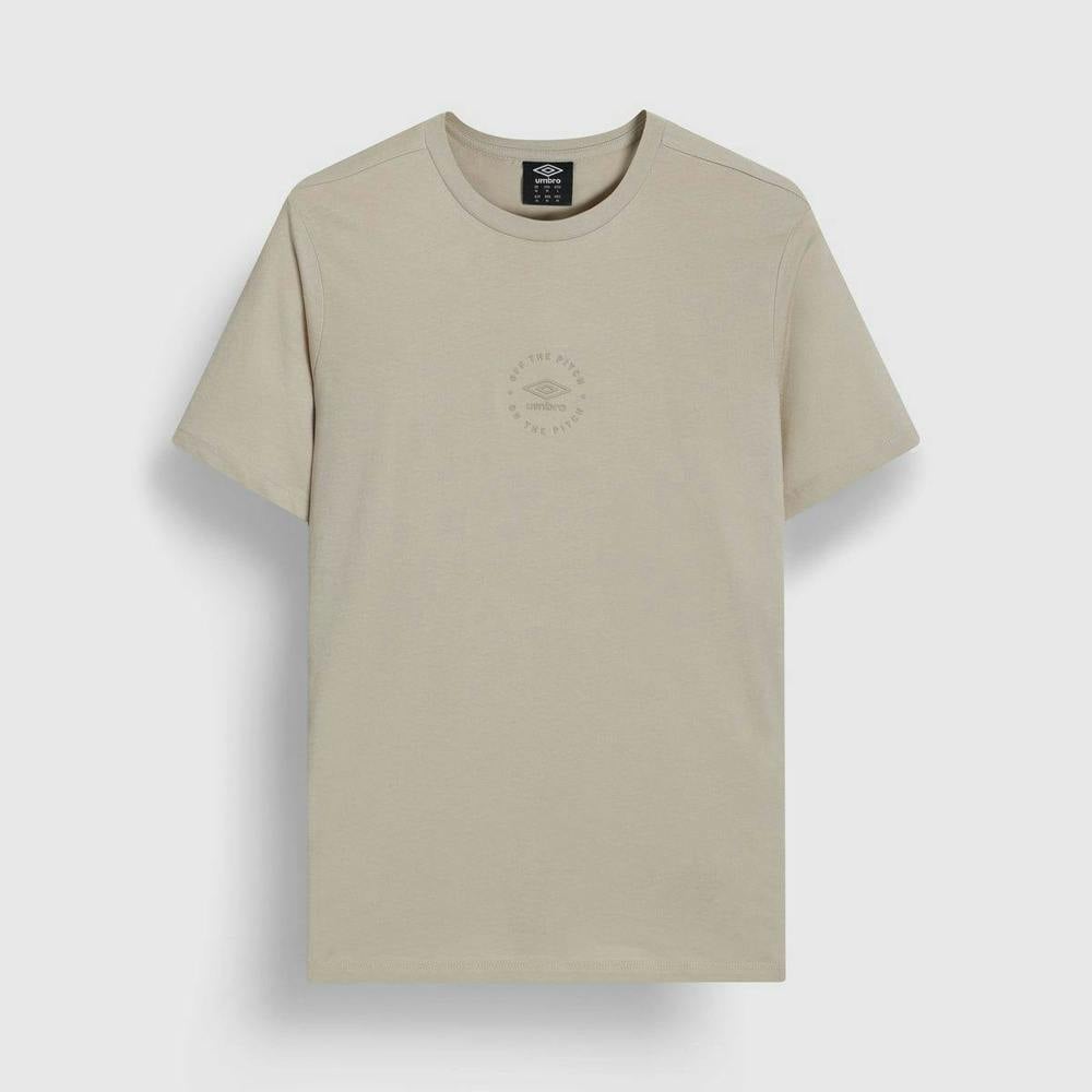 This Umbro men’s T-shirt is made from 100% cotton in single jersey fabric with a 150gsm weight. It has a relaxed fit and a crew neckline finished with ribbing. Short sleeves and a drop shoulder shape complete the casual silhouette.