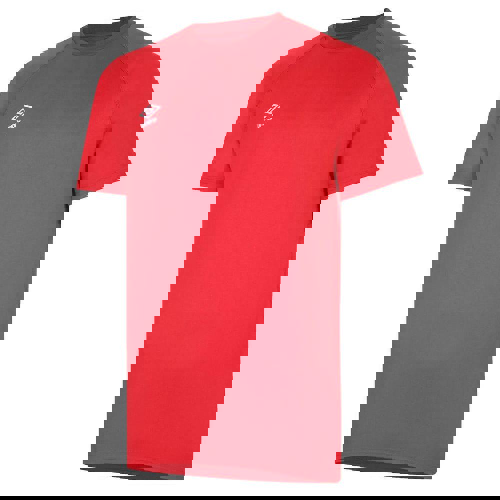 This Umbro men’s rugby drill top is made from 100% polyester in a knitted fabric. It has a crew neck and short raglan sleeves, finished with articulated panels for a structured look. Reflective piping adds a defined outline, while the logo design keeps the branding clear and simple.