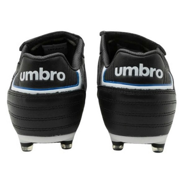 The Umbro Mens Speciali Eternal Team HG Leather Football Boots are designed for lace-up wear, with a low-cut profile and a round toe shape. Finished in black, white and royal blue, they feature contrast detailing as part of the overall design.
