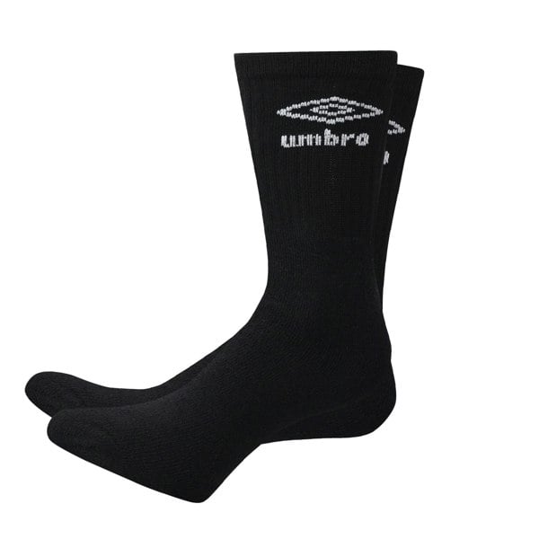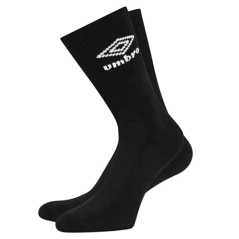 This pack of three men’s sports socks from Umbro comes in black with a plain finish and logo detail. Made from a cotton, elastane and nylon blend, they use a ribbed fabric construction for a structured look and feel suited to everyday wear.
