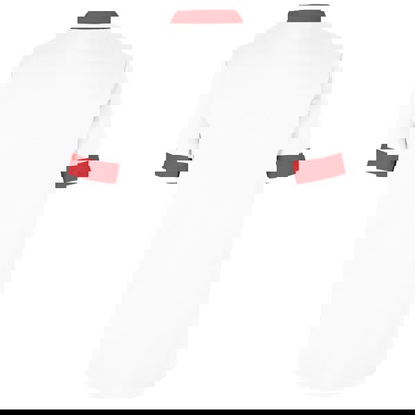 The neckline combines contrast detailing with a flat knit, ribbed, turn-down collar. Short sleeves and contrast cuffs complete the clean, sporty look.