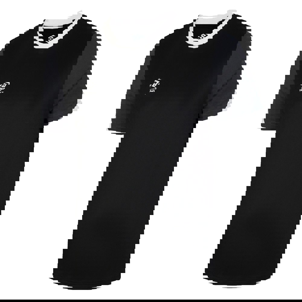 Umbro Total Training jersey in black, white and carbon. Made from 100% polyester micro eyelet fabric, it is breathable, lightweight and moisture wicking. The crew neckline has a contrast finish for a clean, sporty look.