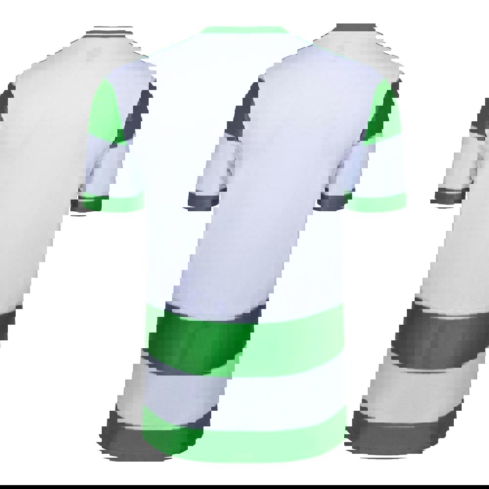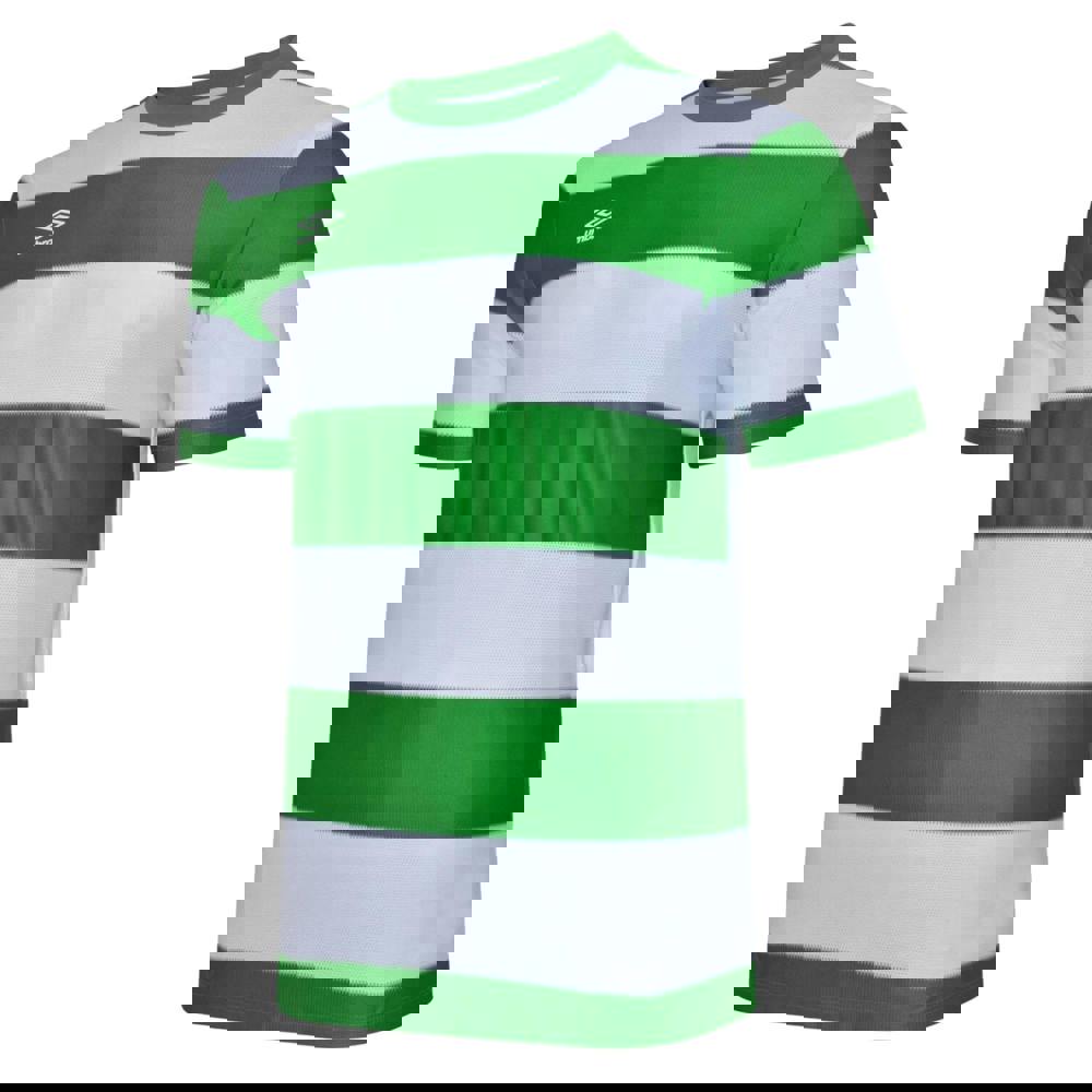 This Umbro Triumph jersey is made from 100% polyester in a jacquard fabric. It comes in emerald green and white with a contrast stripe design and a logo detail.