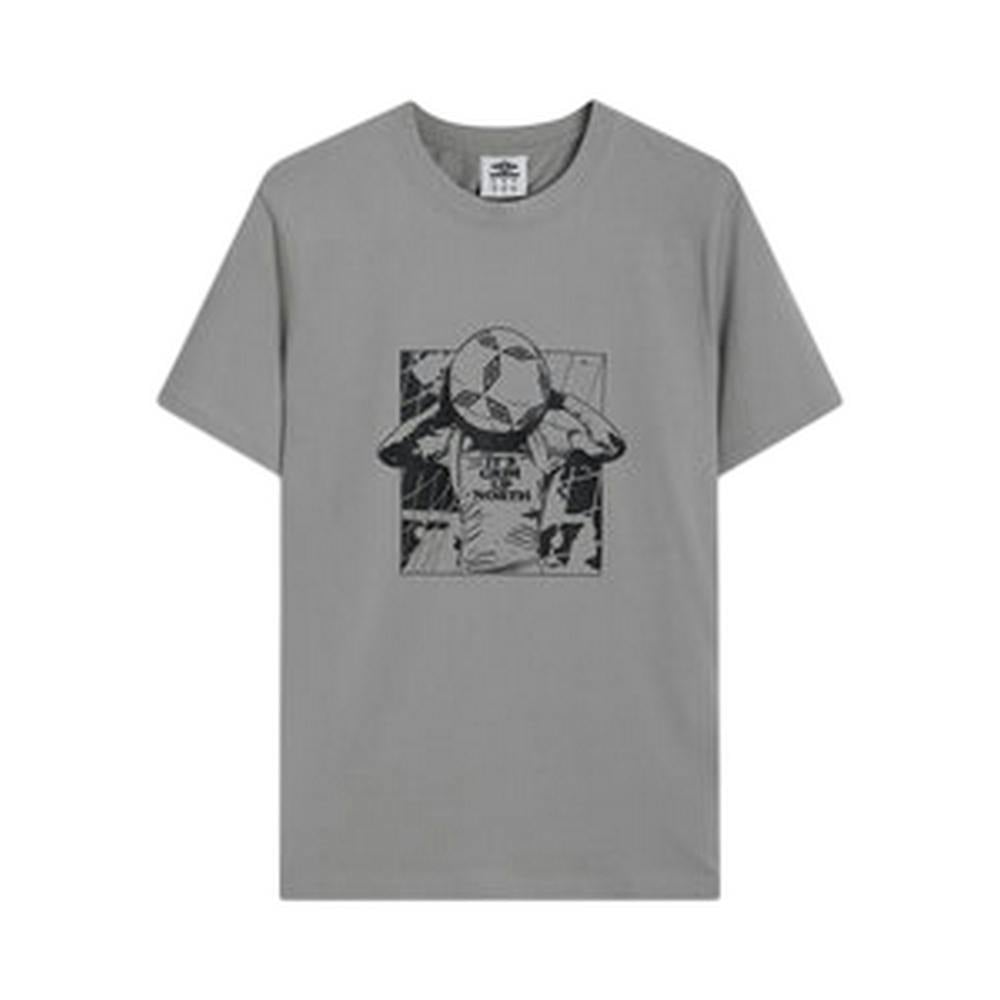 This men’s graphic T-shirt from Umbro is made from cotton and elastane in single jersey fabric. It has a crew neck with a ribbed finish and short sleeves, cut to a regular fit. The design includes a football and football goal graphic print with a man motif, finished in Ultimate Grey.