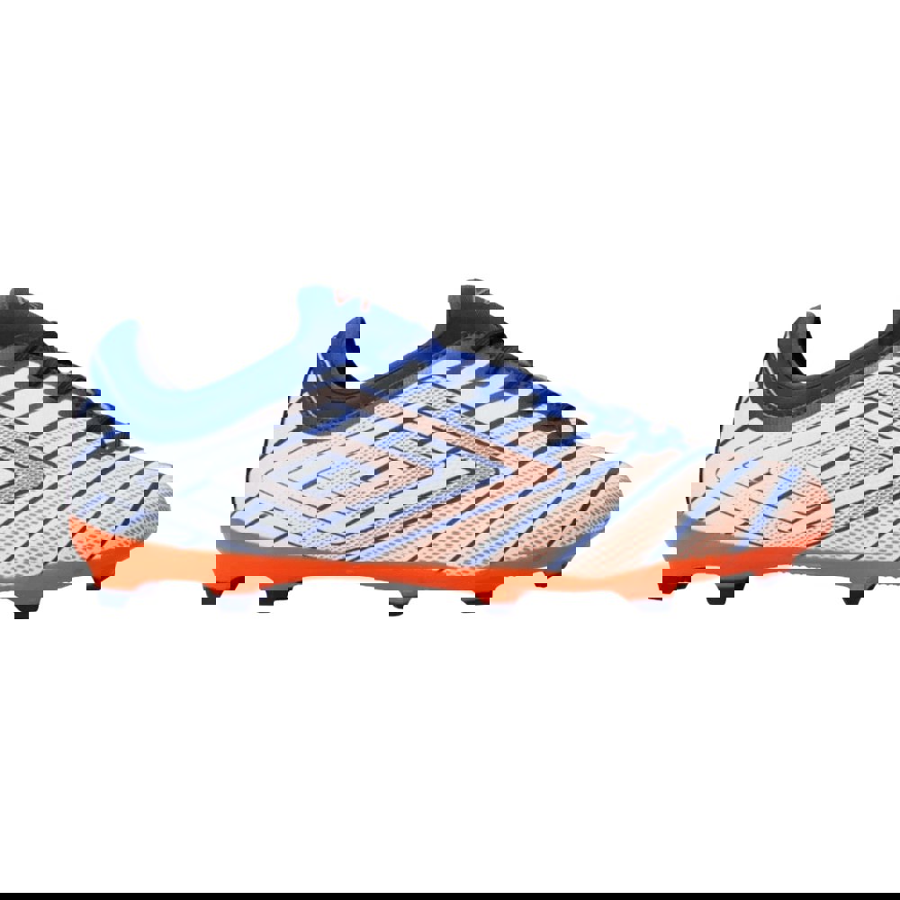 The Umbro Mens Velocita Elixir Club Firm Ground Football Boots are designed for firm ground play, with a low-cut profile and a flat shape for a close, streamlined feel. Finished in white and orange, they feature a graphic print design with logo detailing for a bold on-pitch look.