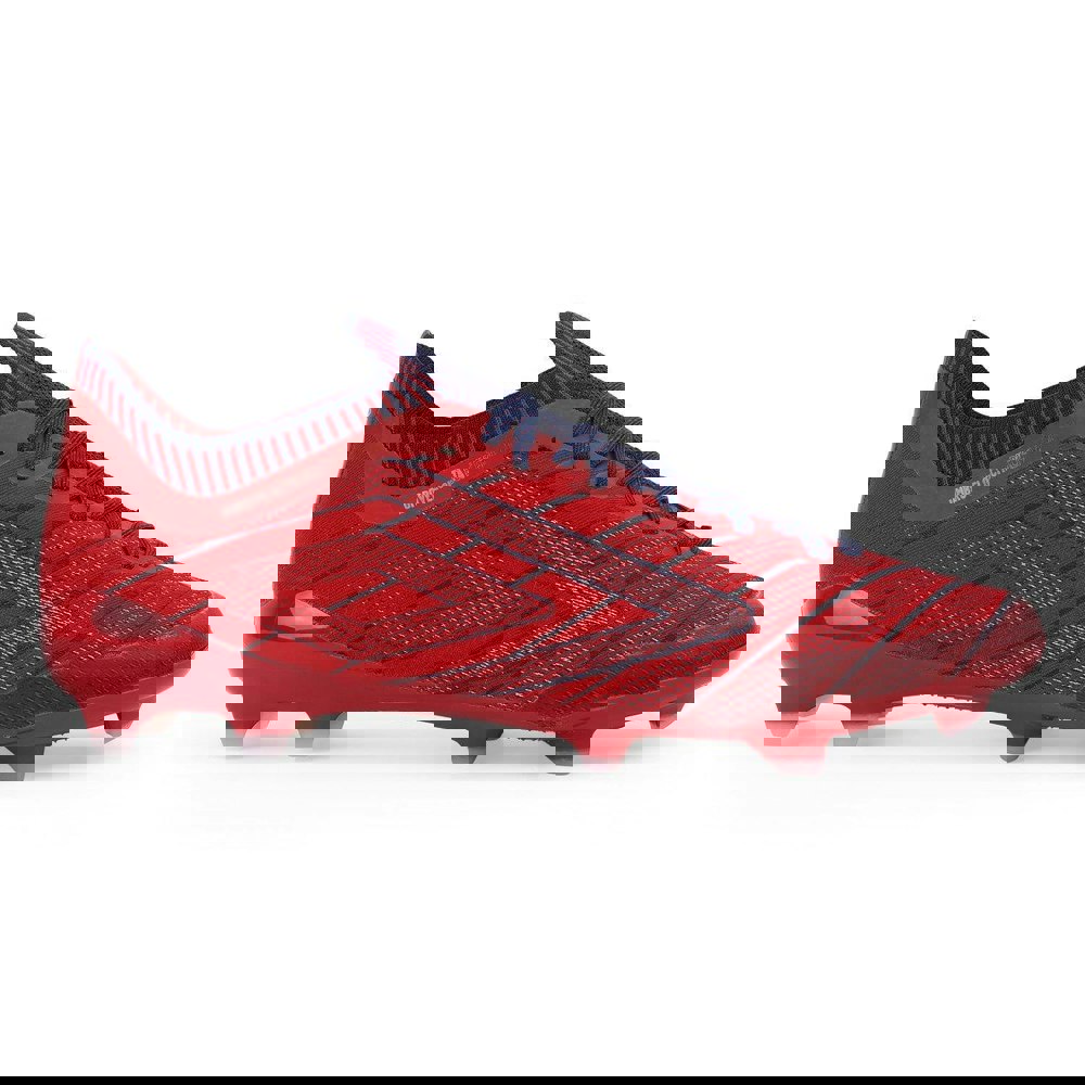 The Umbro Mens Velocita Elixir Pro Firm Ground Football Boots are designed with a low-cut profile and a flat sole, finished in Rococo Red, White and Estate Blue. Contrast detailing is paired with stripe detail and logo accents for a distinctive on-pitch look.