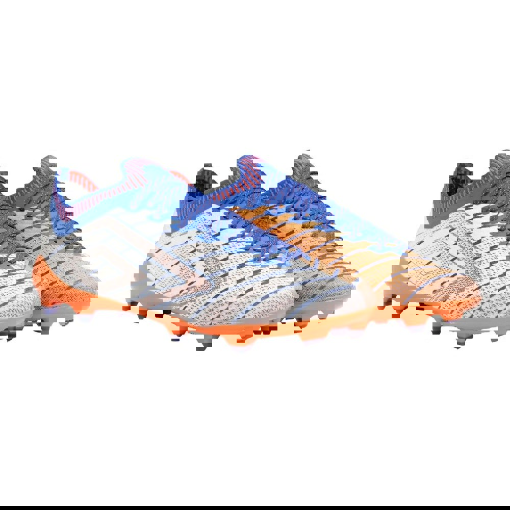 The Umbro Mens Velocita Elixir Pro Firm Ground Football Boots are designed with a low-cut profile and a flat sole, finished in White/Deep Surf/Vermillion. Contrast detailing is paired with stripe detail and logo styling for a clean, modern look on the pitch.