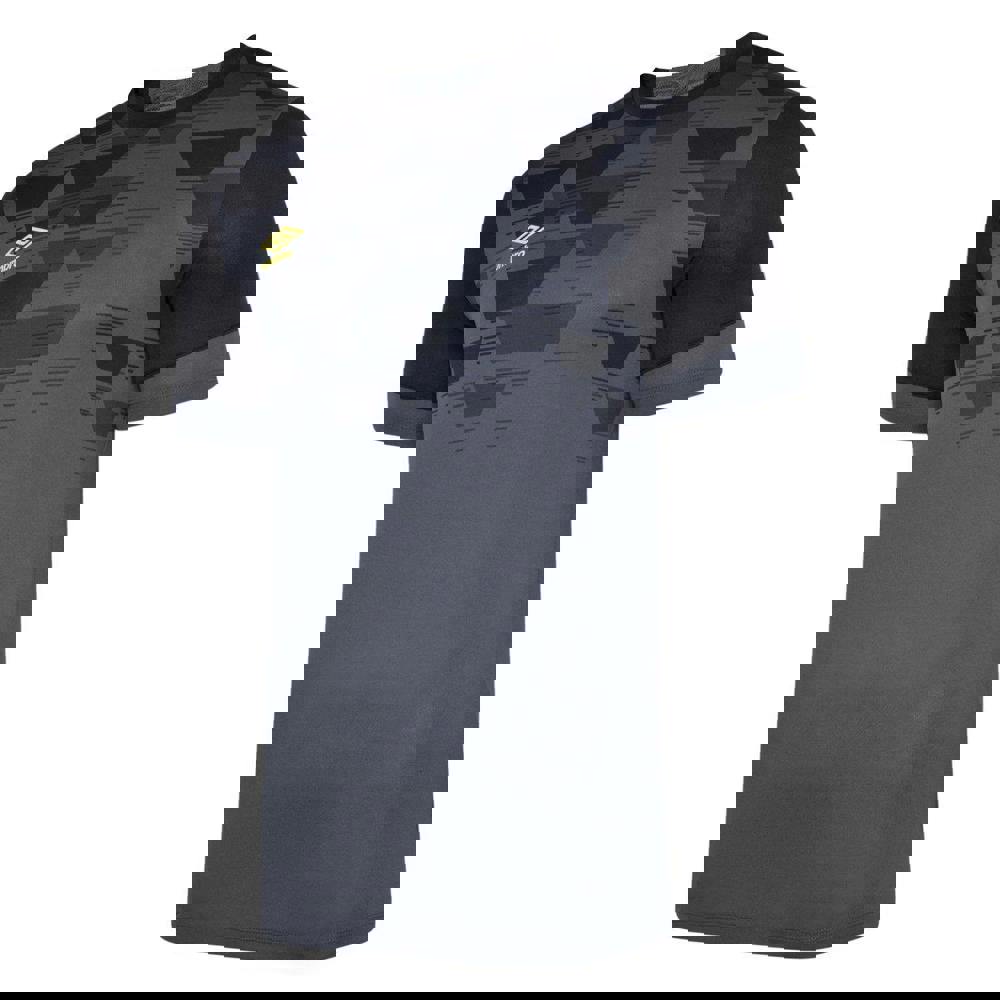 This men’s Vier jersey from Umbro comes in carbon and black with a graphic print and logo detail. It is made from 100% polyester and uses a lightweight fabric technology for a clean, easy-to-wear feel. A crew neckline and short sleeves keep the silhouette simple and familiar, making it a straightforward option for everyday casual outfits.