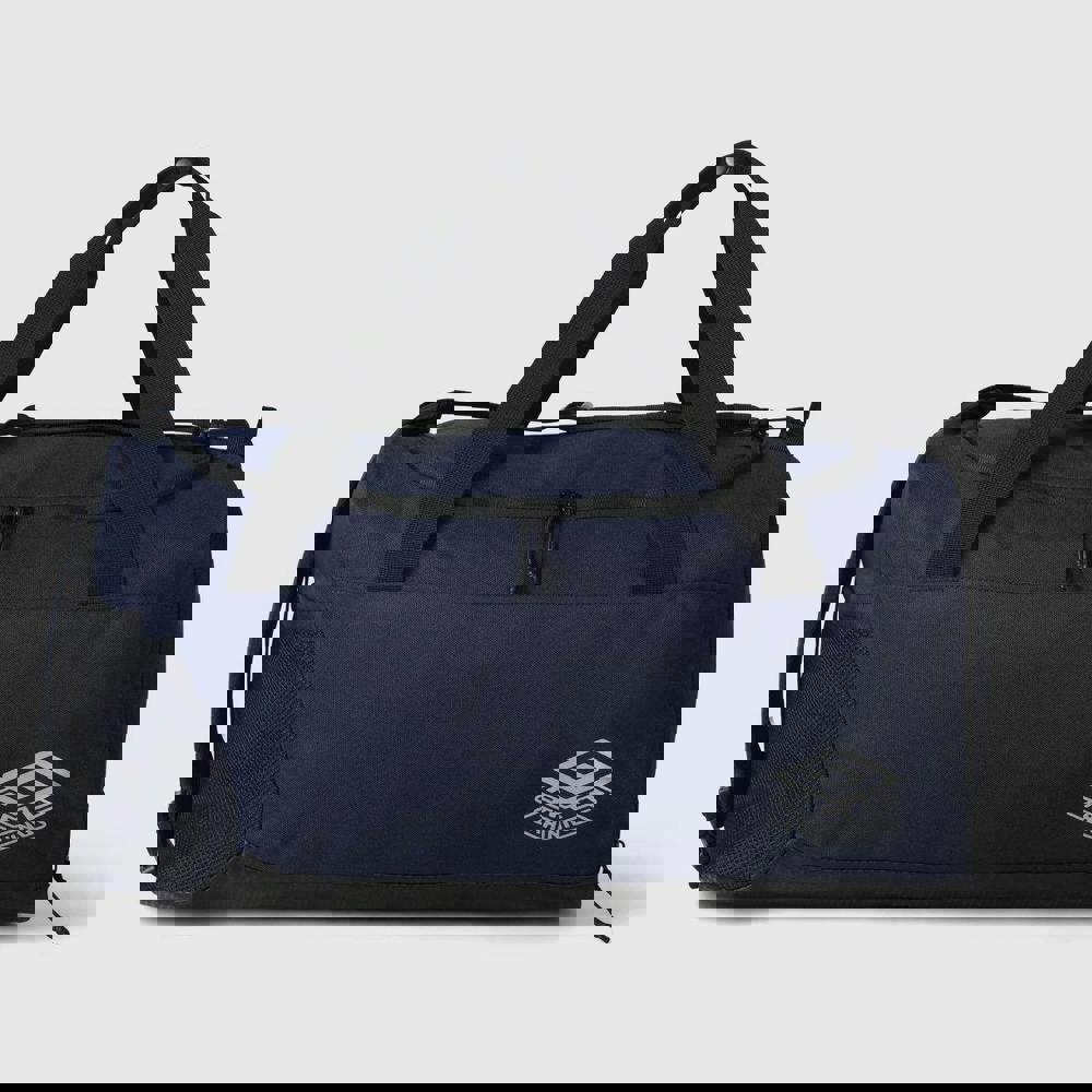 Finished in dark navy with silver and black detailing, this duffle bag includes an internal mesh divider to help separate items within the main compartment. Carry options are flexible thanks to adjustable carry straps and an adjustable shoulder strap, with a detachable strap for added convenience. A side pocket provides a handy space for smaller items you want close to hand, while the two-way zip fastening allows quick opening and closing.