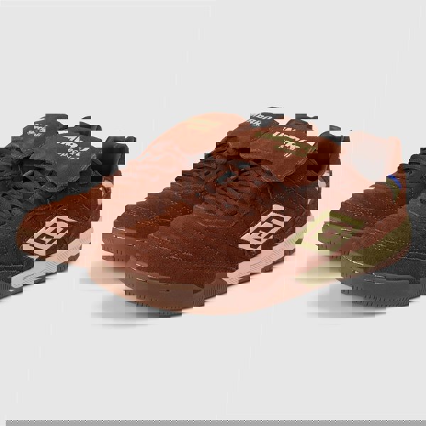 Retro football-inspired trainers with a premium quilted suede upper, classic fold-over tongue, and durable rubber gum sole for vintage sports style and comfort.