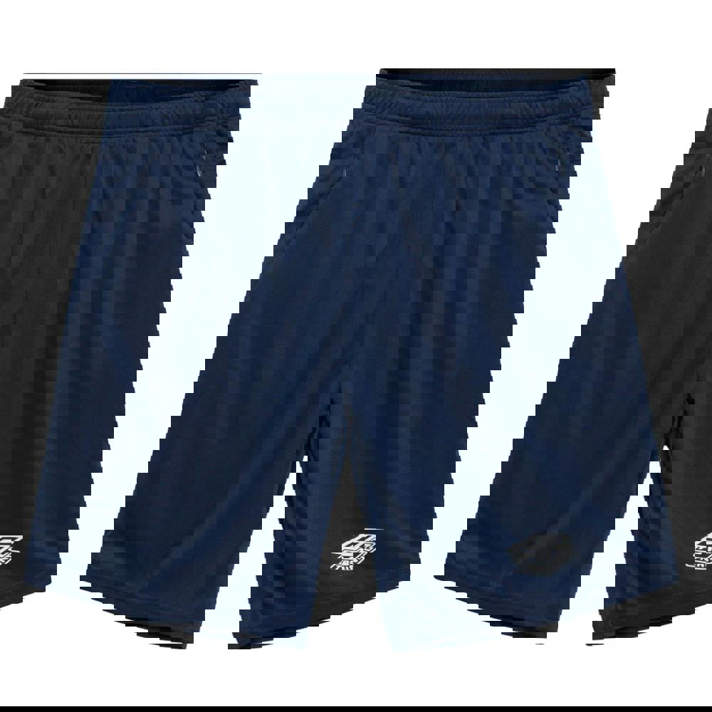 These Umbro Optimus training shorts come in navy and are made from 100% recycled polyester. The unisex design includes a tonal panel insert and a silicone logo for a clean, sporty finish.