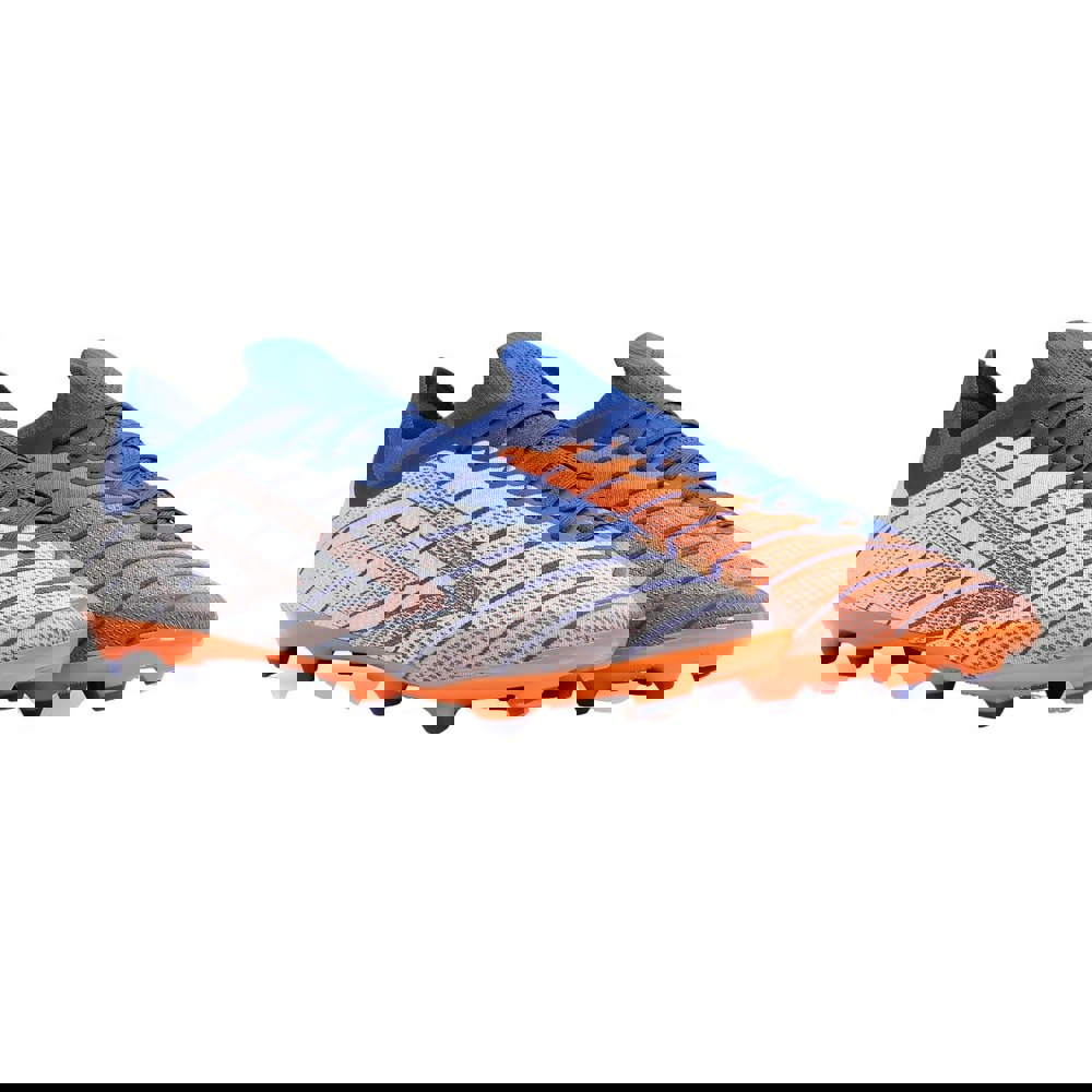 The Umbro Unisex Adult Velocita Elixir Premier Firm Ground Football Boots are designed for firm ground play, with a low-cut profile and a lace-up fastening for a secure fit. Finished in White/Deep Surf/Vermillion Orange, they feature a contrast striped design with logo detailing for a distinctive on-pitch look.