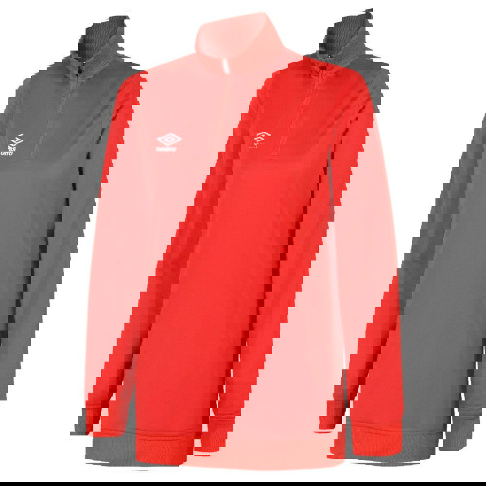Refresh your casual wardrobe with this Umbro Women’s Club Essential half zip sweatshirt in vermillion. Made from 100% polyester, it has a funnel neck with a zip neck detail for a clean, sporty finish. The long sleeves are balanced with ribbed cuffs and a ribbed hem for a neat outline.