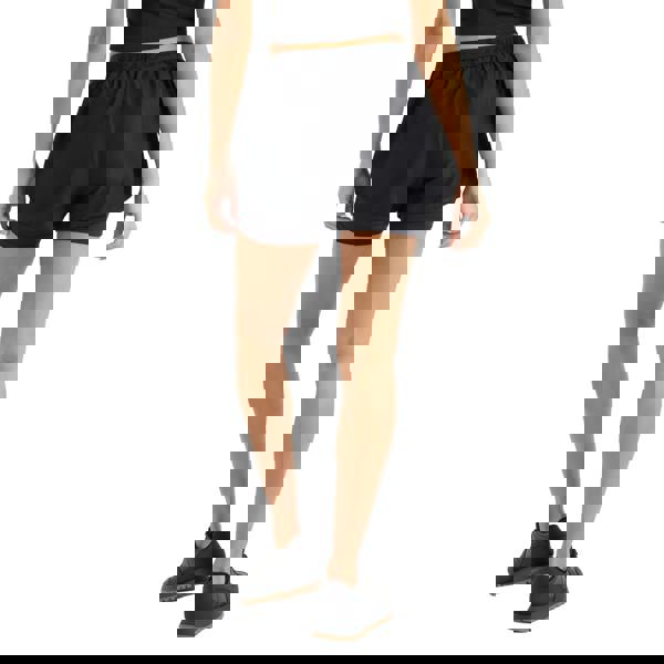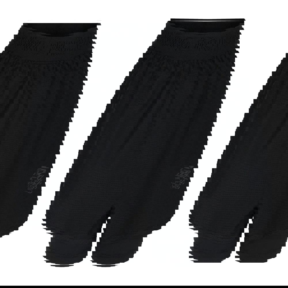 Built for training, the Umbro Women’s Pro Training Hybrid Shorts combine a woven outer with integrated inner shorts for a secure, layered feel. The material blend of elastane and polyester is paired with ripstop, single jersey and woven fabric constructions, keeping the finish flexible and durable. A bound hem gives a clean edge, while the elasticated waist is finished with Umbro branding for a defined fit. Logo and text detailing complete the look in black.