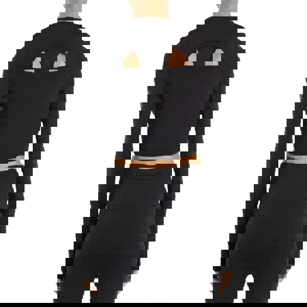 This women’s Pro Training long-sleeved crop top from Umbro is made from a single jersey stretch material with elastane, polyester and recycled polyester. Cut in a plain black finish, it is detailed with a tonal logo and a crew neckline.