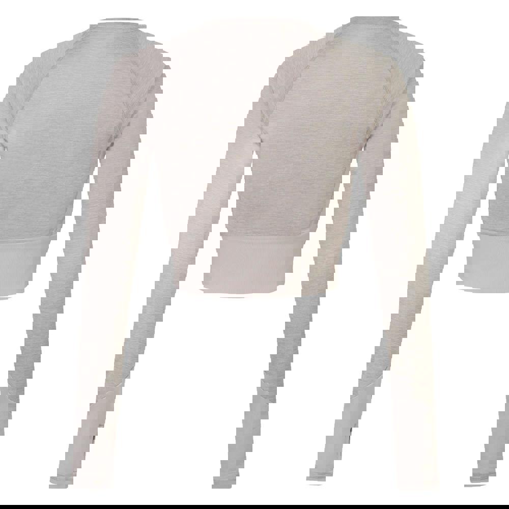 This long-sleeved crop top from Umbro Womens Pro Training is made from a blend of elastane, nylon and polyester, including recycled materials. It comes in silver grey marl with a patterned finish, contrast panels and logo detailing.