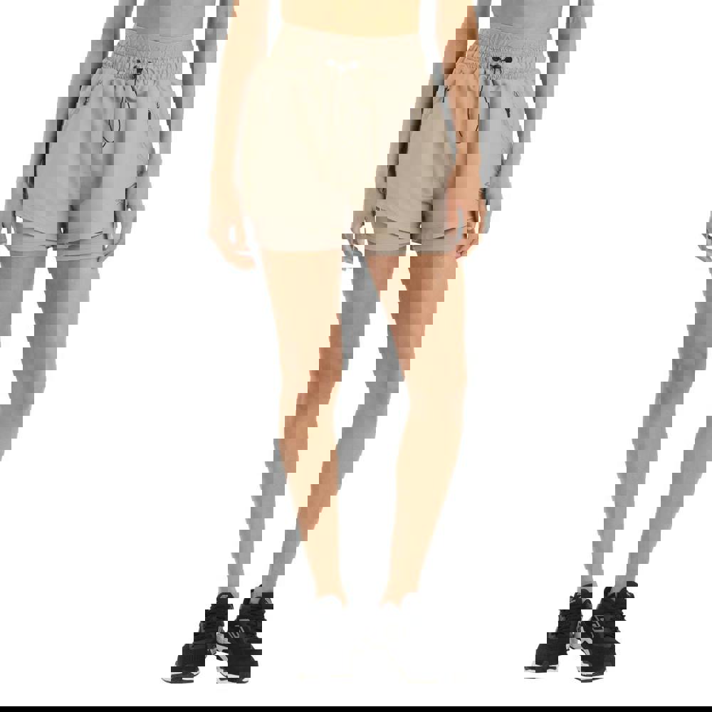 An elasticated waistband with branded detailing provides a secure feel, while two side pockets include a zip pocket for keeping small essentials close. The 97gsm lightweight build keeps the design streamlined.