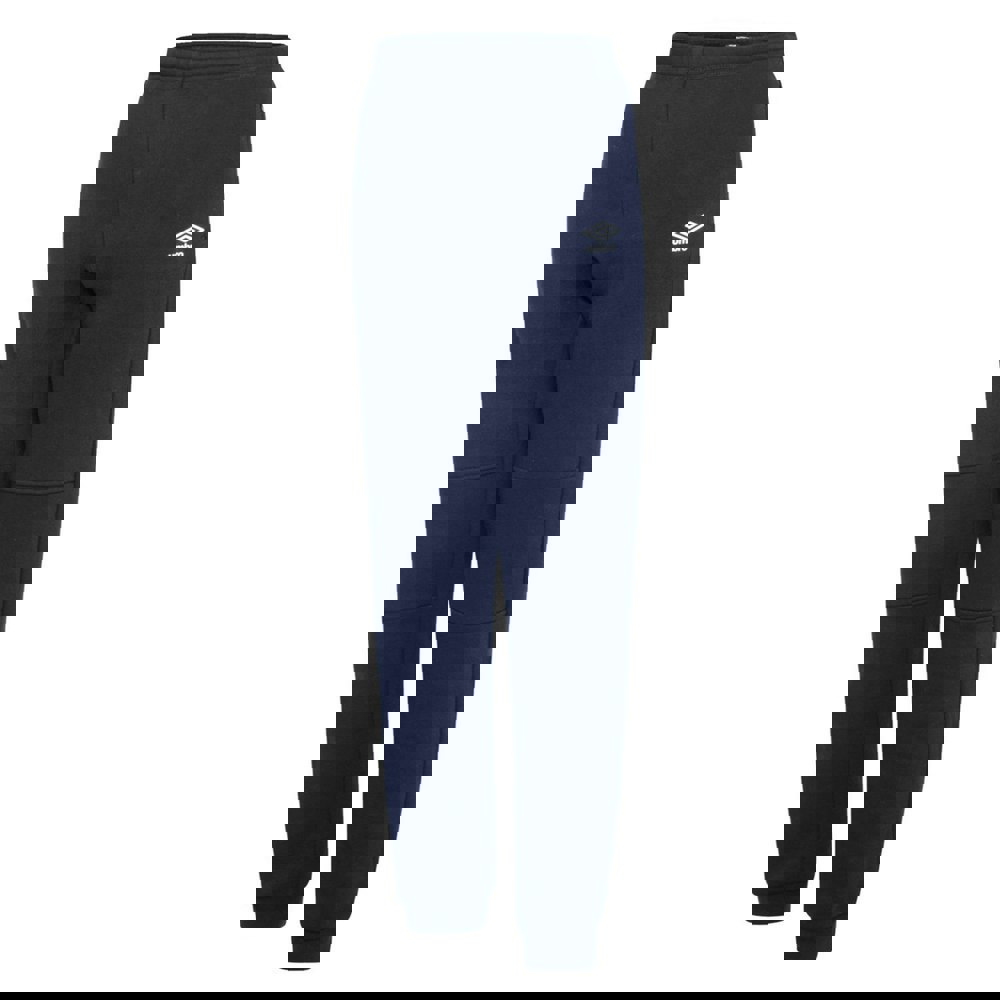 These Umbro Club leisure jogging bottoms come in navy and white with a stacked logo design. Made from a cotton and polyester blend, they have an elasticated waistline for a secure, flexible feel. A cuffed ankle finish keeps the shape neat, while the zip detail and branded zip pull add a practical touch.