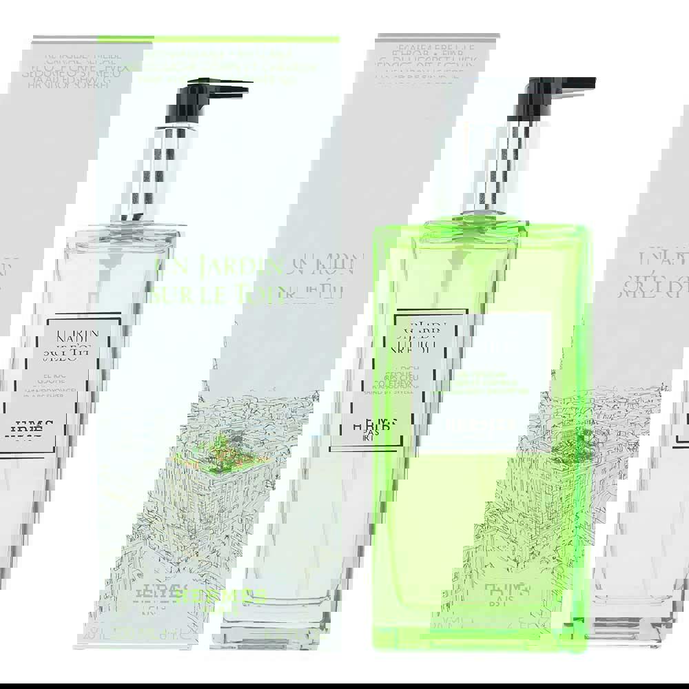Hermès Un Jardin Sur Le Toit Hair and Body Shower Gel combines a fragranced cleanse for both hair and body in a single formula. Created to accompany the Un Jardin Sur Le Toit scent, it brings the character of the fragrance into the shower, leaving skin and hair lightly perfumed after rinsing.
