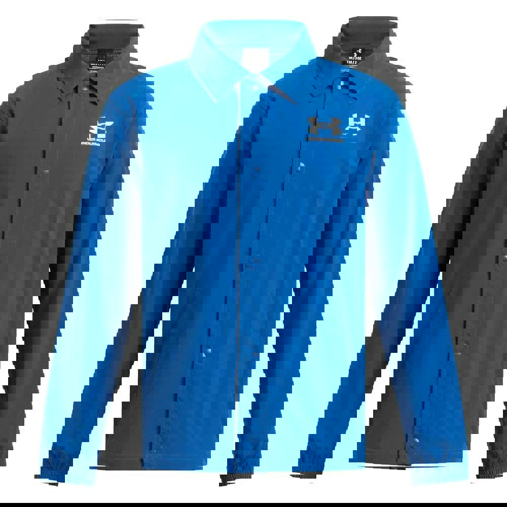 This boys’ Icon Woven Coach Jacket from Under Armour comes in blue with a plain finish and icon detail. Made from 87% polyester and 13% elastane, it uses a woven fabric with 4-way stretch. The jacket is lightweight and breathable, with a mesh lining.