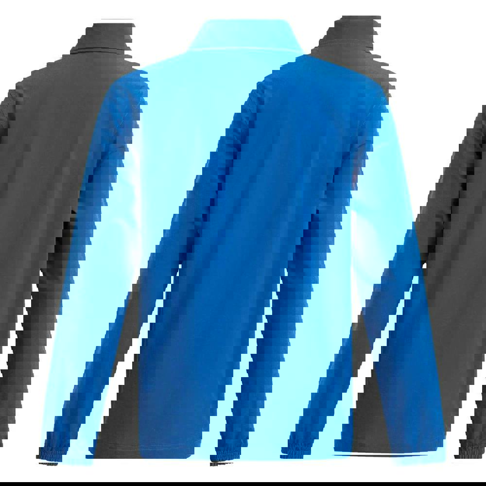 A classic collared neckline and long sleeves create a clean, structured look. Elasticated cuffs and a full-length snap closure complete the design, while two side pockets add practical storage.
