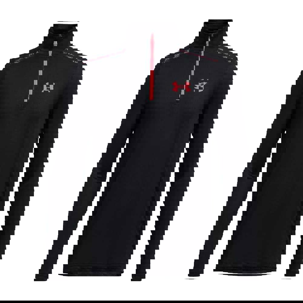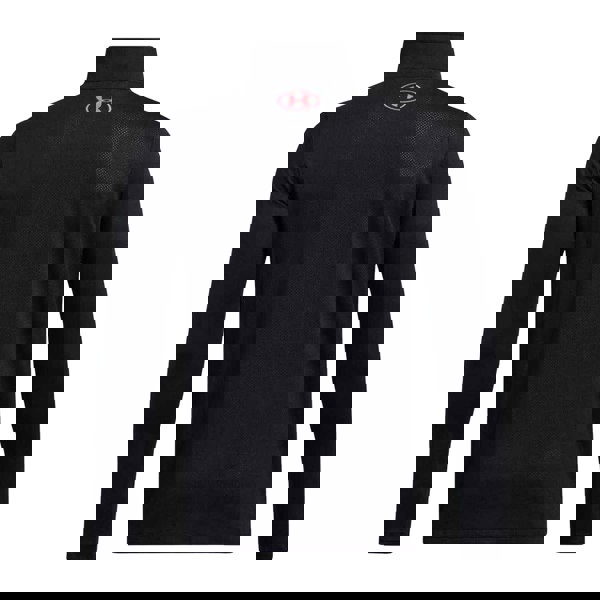 This Under Armour tech quarter zip top comes in black and pink with contrast detailing and a logo. It has long sleeves and a standing collar, finished with a shaped hem. The streamlined fit and pull over style sit alongside a quarter zip fastening for a clean, sporty look.