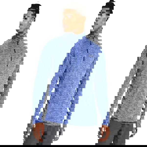 This men’s technical top from Under Armour is made from 100% polyester and finished in royal blue. It has a half zip fastening and a standing collar for a clean, sporty look, with long sleeves and a shaped hem.