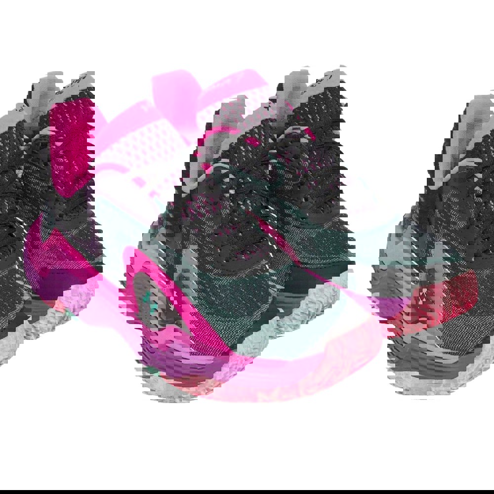 These Under Armour men’s basketball shoes come in black with a low-cut profile and a round toe. The upper combines mesh, TPU and woven sections, finished with a plain base and contrast detailing, plus logo branding. A lace-up fastening runs through five eyelets for a secure fit.
