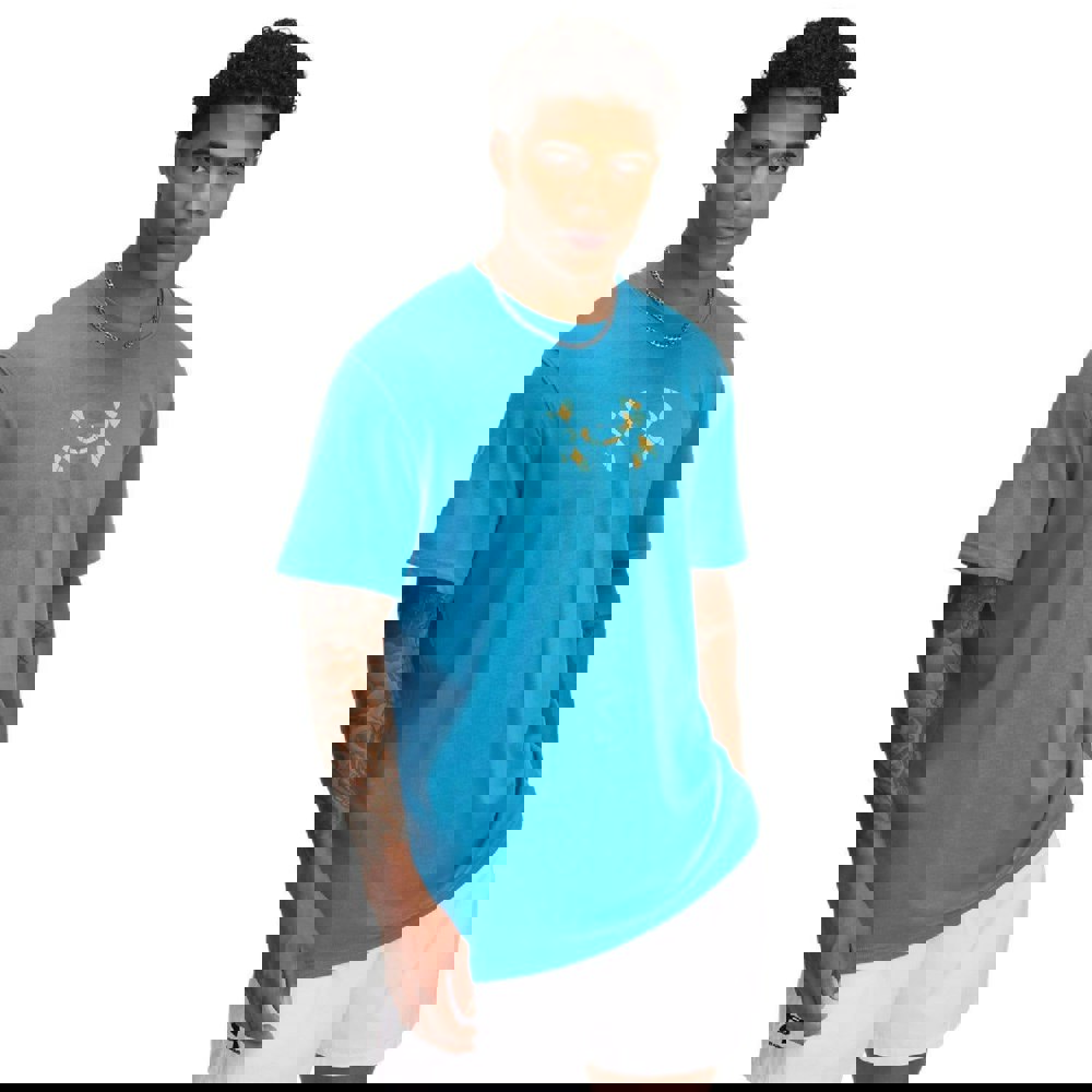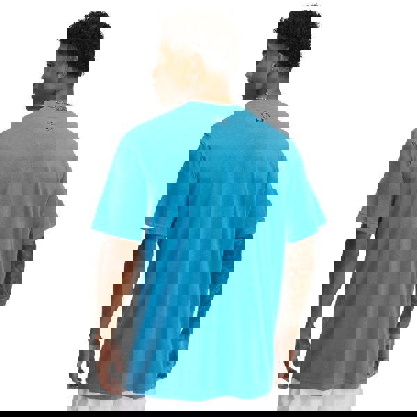 Under Armour men’s heavyweight holiday T-shirt in blue, made from a 60% cotton and 40% polyester blend. The soft-touch fabric is finished with a printed logo design for a clean, graphic look. A ribbed crew neckline keeps the shape neat, while the short sleeves and loose fit give it an easy, relaxed feel for casual wear.