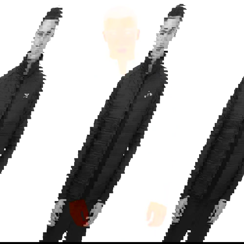 Material: Elastane, Polyester. Fabric: Knitted, Stretch. Design: Logo, Plain, Quilted, Reflective. Fabric Technology: Breathable, Insulating, Soft, UA Storm Technology, Water Repellent. Neckline: Insulated Collar, Standing Collar. Cuff: Knitted. Sleeve-Type: Long-Sleeved, Raglan. Underarm Panel. Pockets: 2 Side Pockets, Zip. Fastening: Full Zip. Hem: Knitted. M: 41 in. L: 44 in. XL: 48 in.