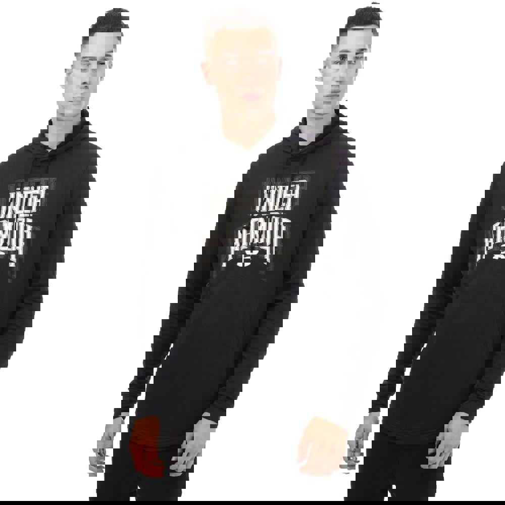 This men’s hoodie is made from a cotton and polyester blend in French terry fabric. It comes in black with a logo design and a hooded neckline, finished with an adjustable drawstring.