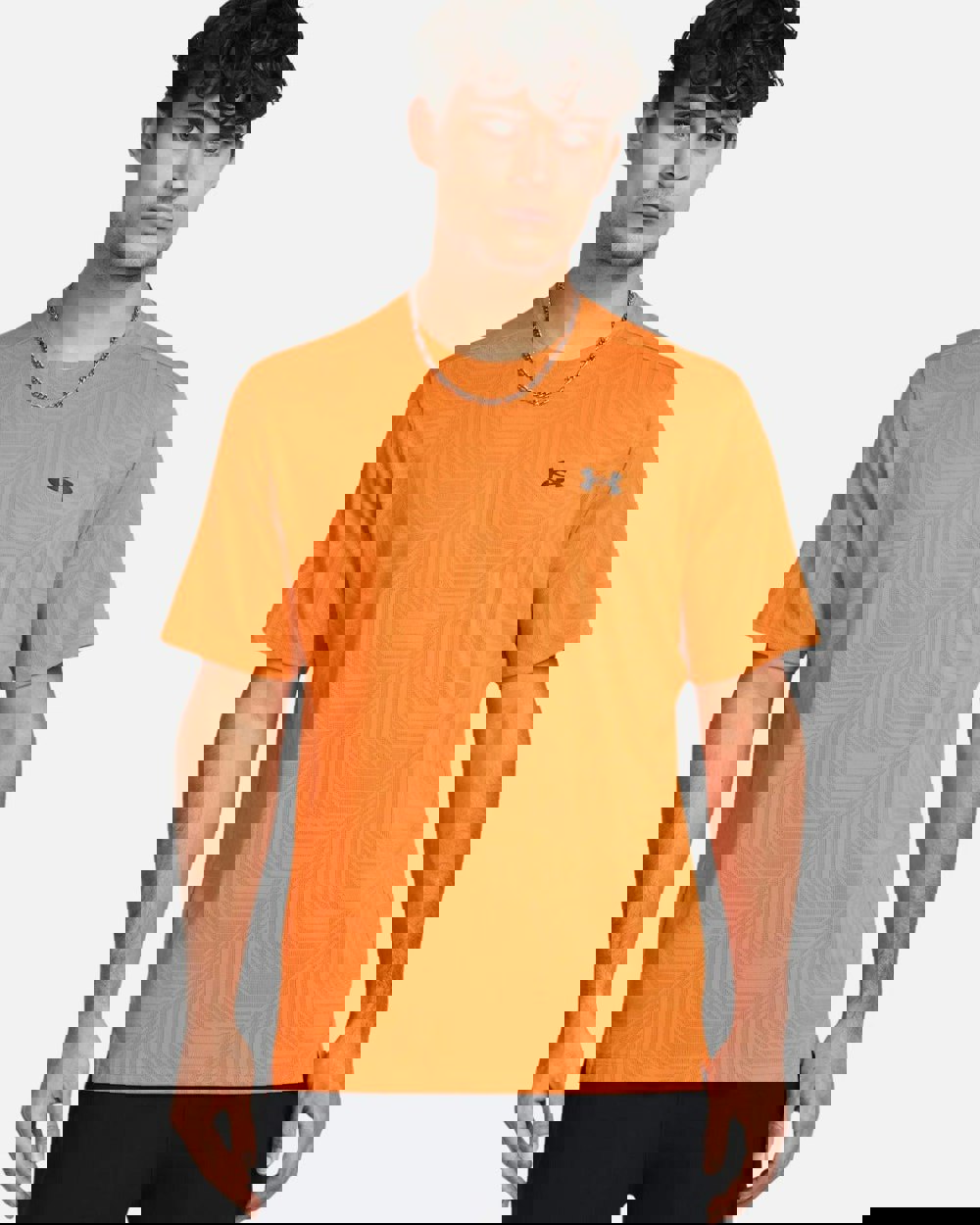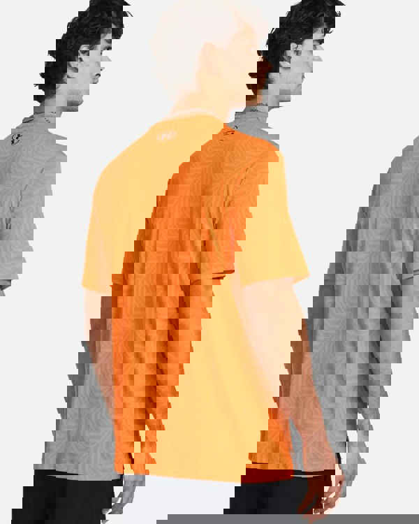 This Under Armour Tech T-Shirt in orange, is made with UA Tech technology, featuring soft polyester fabric and an all over jacquard design. The crew neck and short sleeves provide comfort, making it perfect for any athletic activity. And best of all, it's machine washable for easy care. Material polyester.