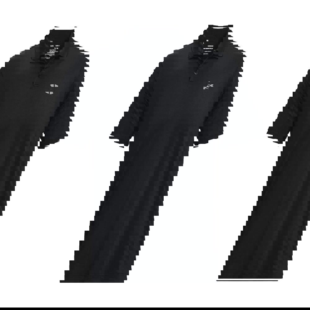 This men’s polo shirt from Under Armour is made from 100% polyester and finished in black. It has a collared neckline and a three-button placket for a classic polo look. Short sleeves and a loose fit keep the silhouette relaxed, making it a practical option for everyday wear.
