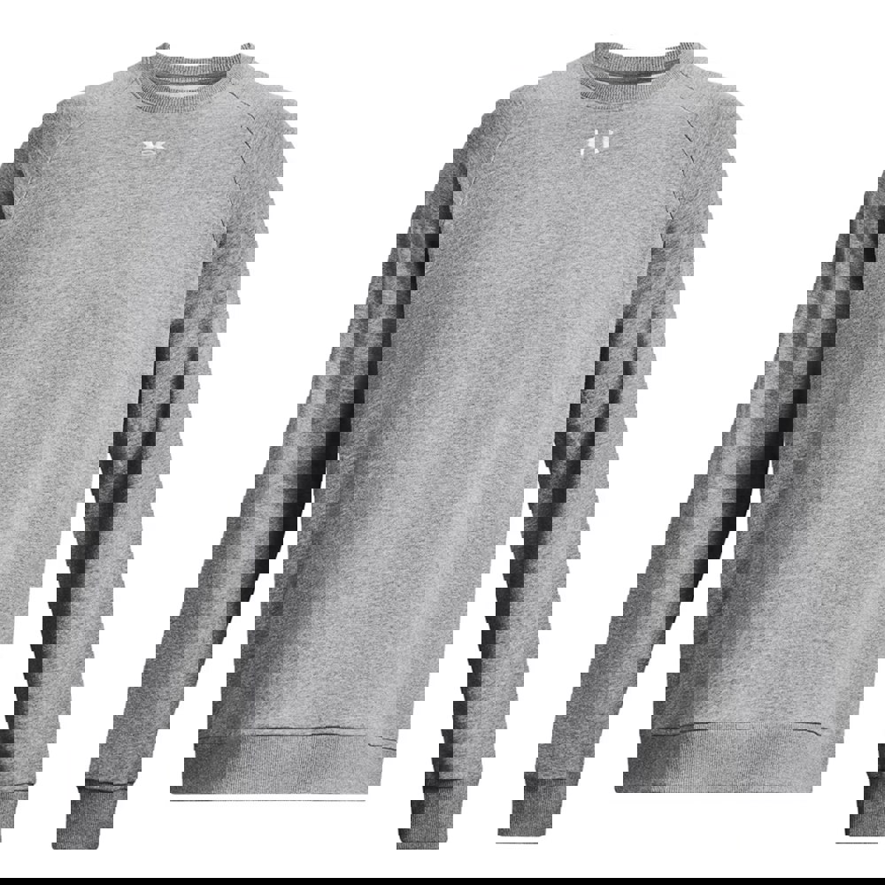 Under Armour Rival Fleece crew neck sweatshirt in Castle Rock/White. Made from an 80% cotton and 20% polyester blend, it uses a soft-touch fleece fabric with a brushed interior and a lightweight feel. The design is finished with a logo detail and a clean, pull-over construction.