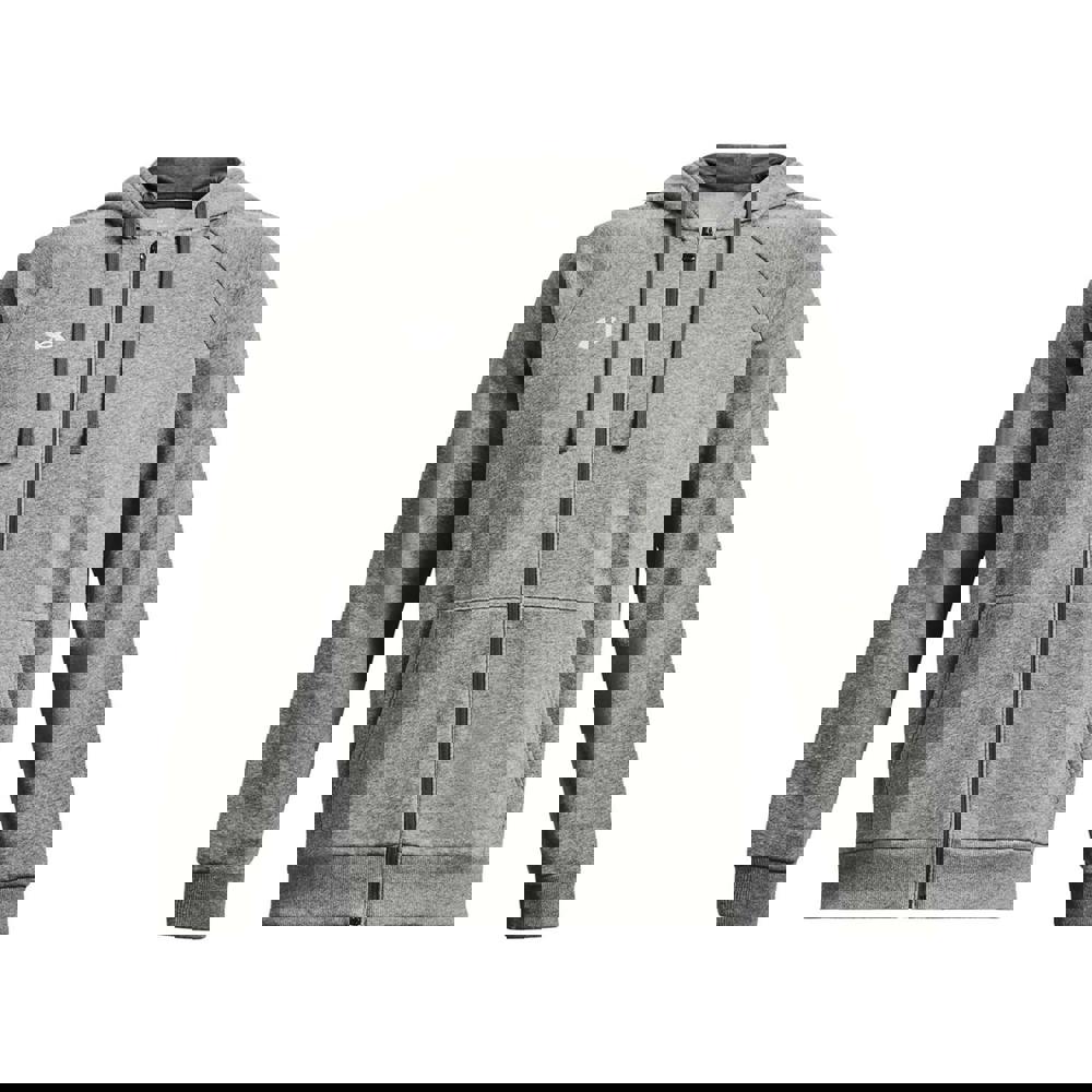 Under Armour Rival Fleece full zip hoodie in Castle Rock. Made from 80% cotton and 20% polyester, with a soft-touch fleece fabric and a brushed interior. The hooded neckline is finished with a grown-on hood and an adjustable drawstring, while long sleeves, ribbed cuffs and a ribbed hem give a clean, structured outline.