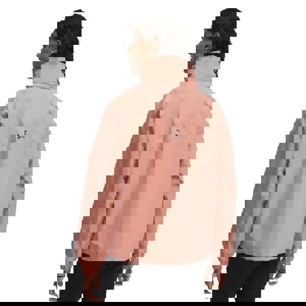 Under Armour Cloudstrike anorak in pink with a bonded polyester construction and long sleeves. The hooded neckline includes a stowable hood, while elasticated cuffs provide a secure finish at the wrists. A half zip sits under a flap fastening, supported by a storm flap and taped seams. Reflective detailing and a logo complete the design.