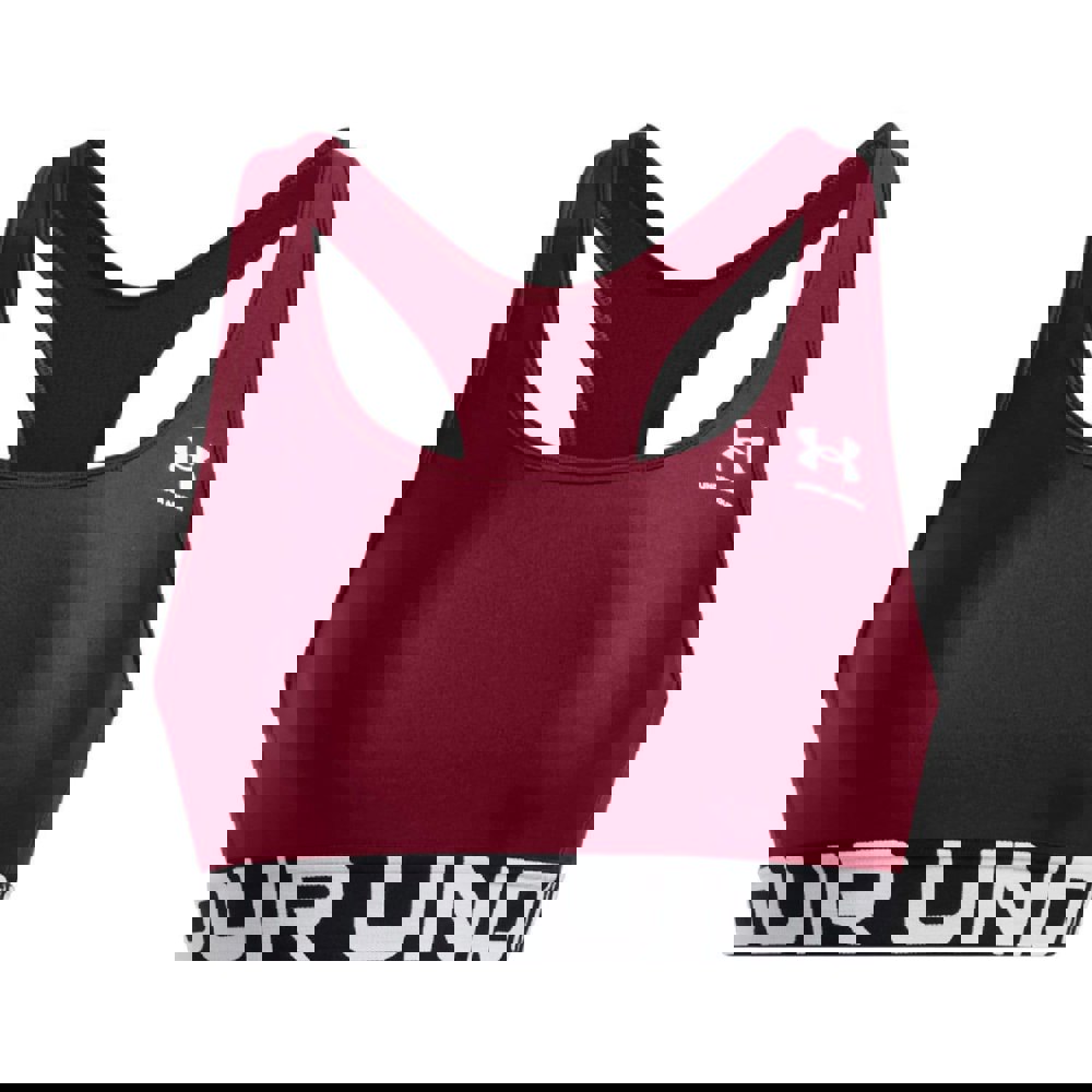 This Under Armour sports bra is made from 87% polyester and 13% elastane, with four way stretch and HeatGear technology. Moisture wicking, odour control and quick dry properties support active wear, while the pull over design keeps the finish clean and streamlined.