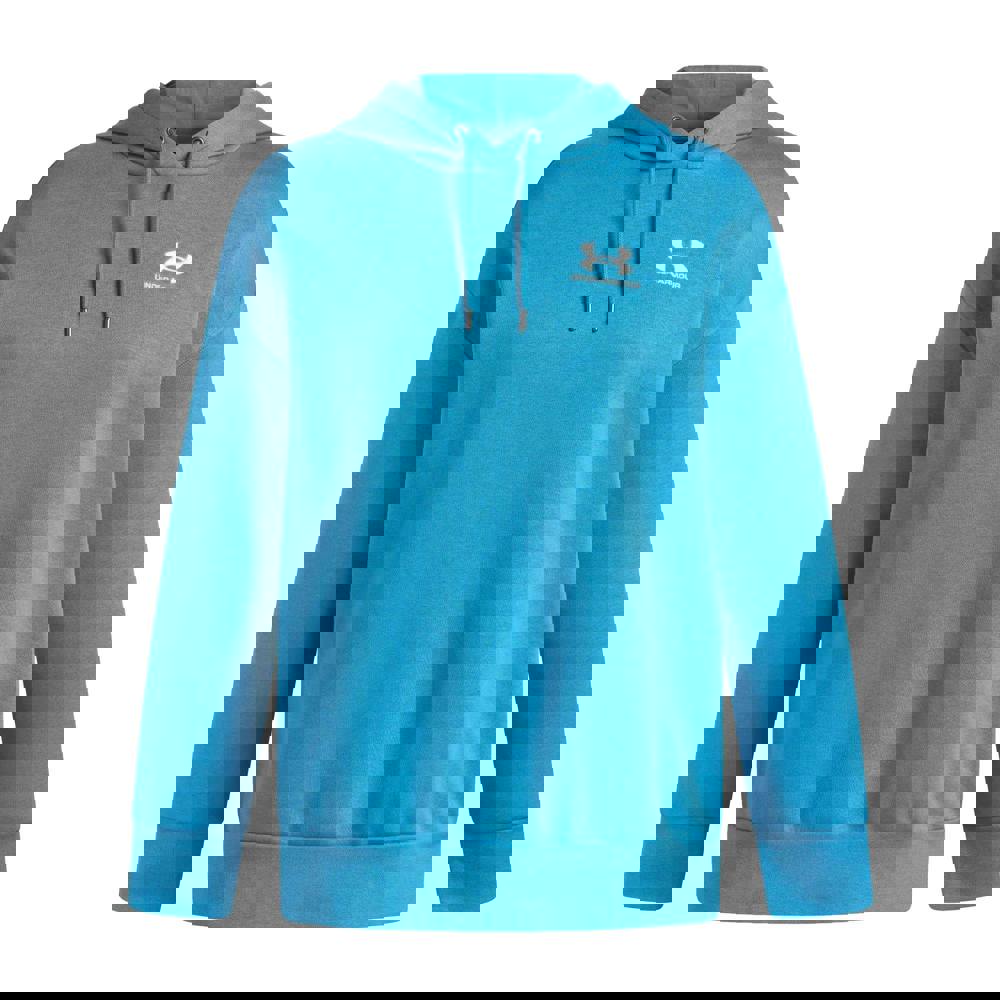 Under Armour Women's Icon Fleece Oversized Hoodie in blue is made from an 80% cotton and 20% polyester blend. The plain design is finished with a logo detail for a clean, minimal look.