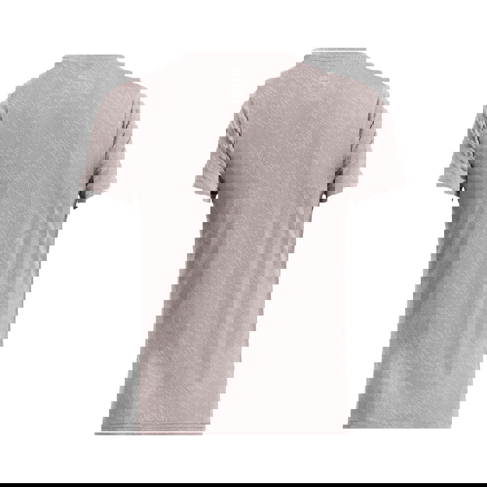 This short-sleeved T-shirt is made from 100% polyester with a knitted jacquard construction and 4-way stretch. It has a crew neck and a plain finish with a back print, offering a clean look from the front with added detail at the rear.